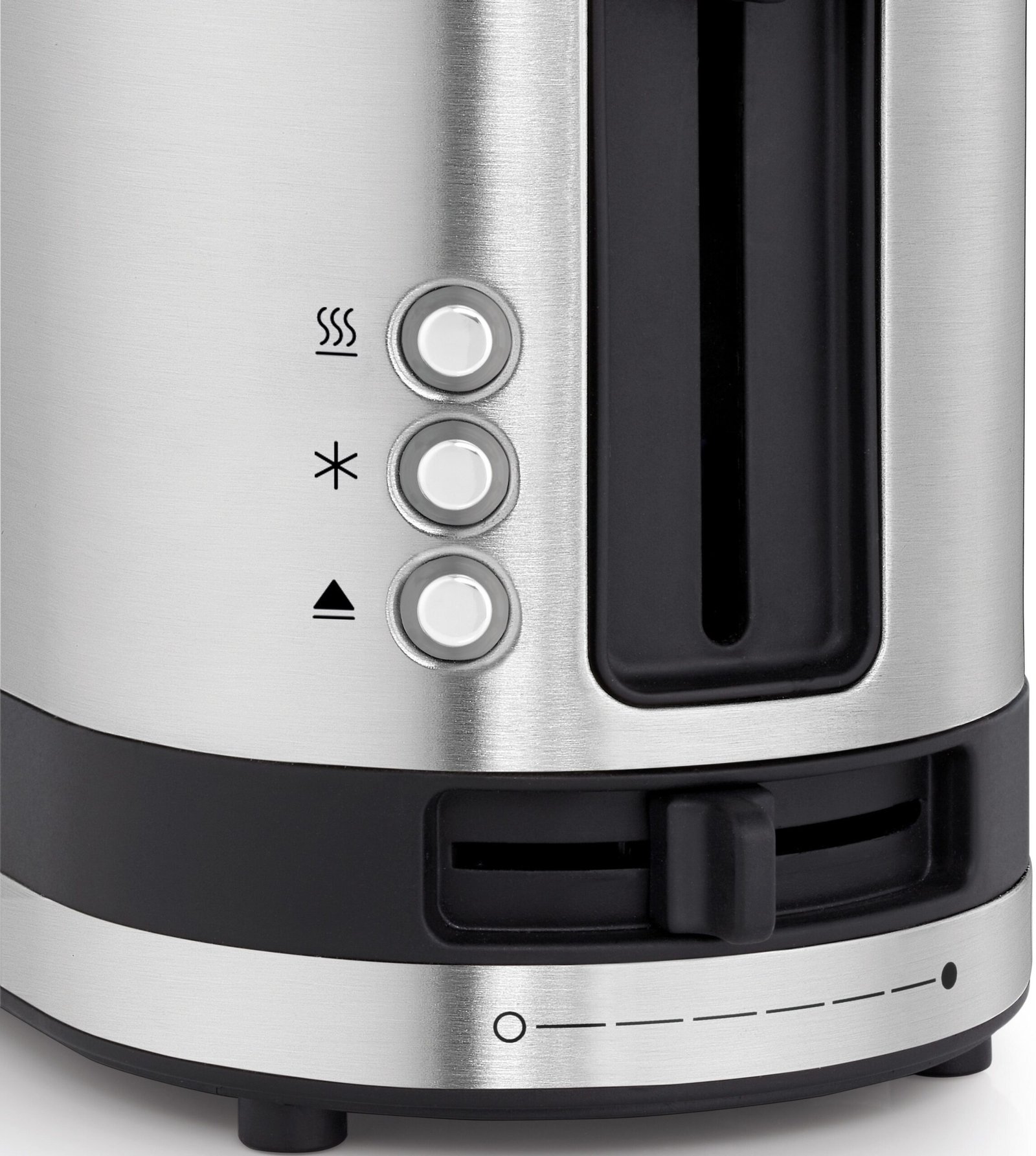 Integrierte Brotzentrierung für gleichmäßige Bräunung.Beleuchtete Funktionstasten (Stopp-, Aufwärm-/ Nachtoast- und Auftau-Funktion)