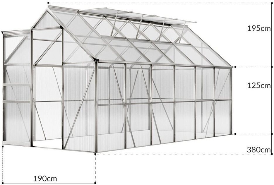 Abris, garages et rangements de jardin Gardebruk Aluminium Greenhouse 380 x 190 x 195 cm Silver