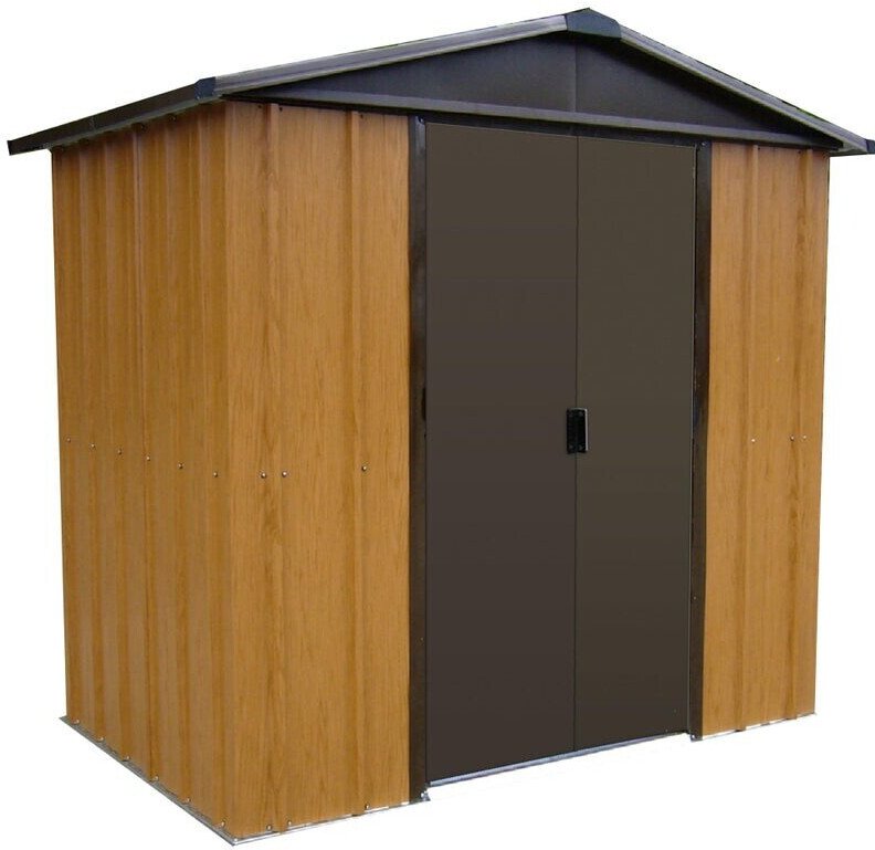 Pas cher en ligne Trigano Abri de jardin métal aspect bois Yardmaster 5,3 m³ + kit d’ancrage Achetez en ligne maintenant