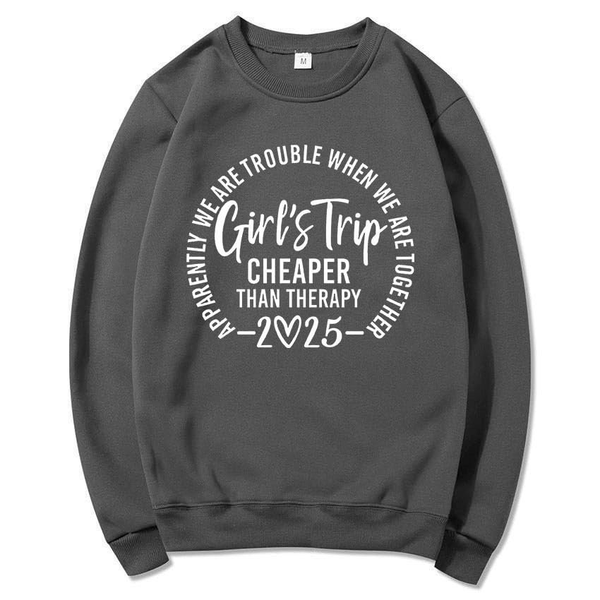 One of our new ones Heevina It’s A Girl’s Trip 2025 Sweatshirt For Women Wine Glass Than Therapy Printed Crewneck Sweatshirts Pullover Good quality and cheap