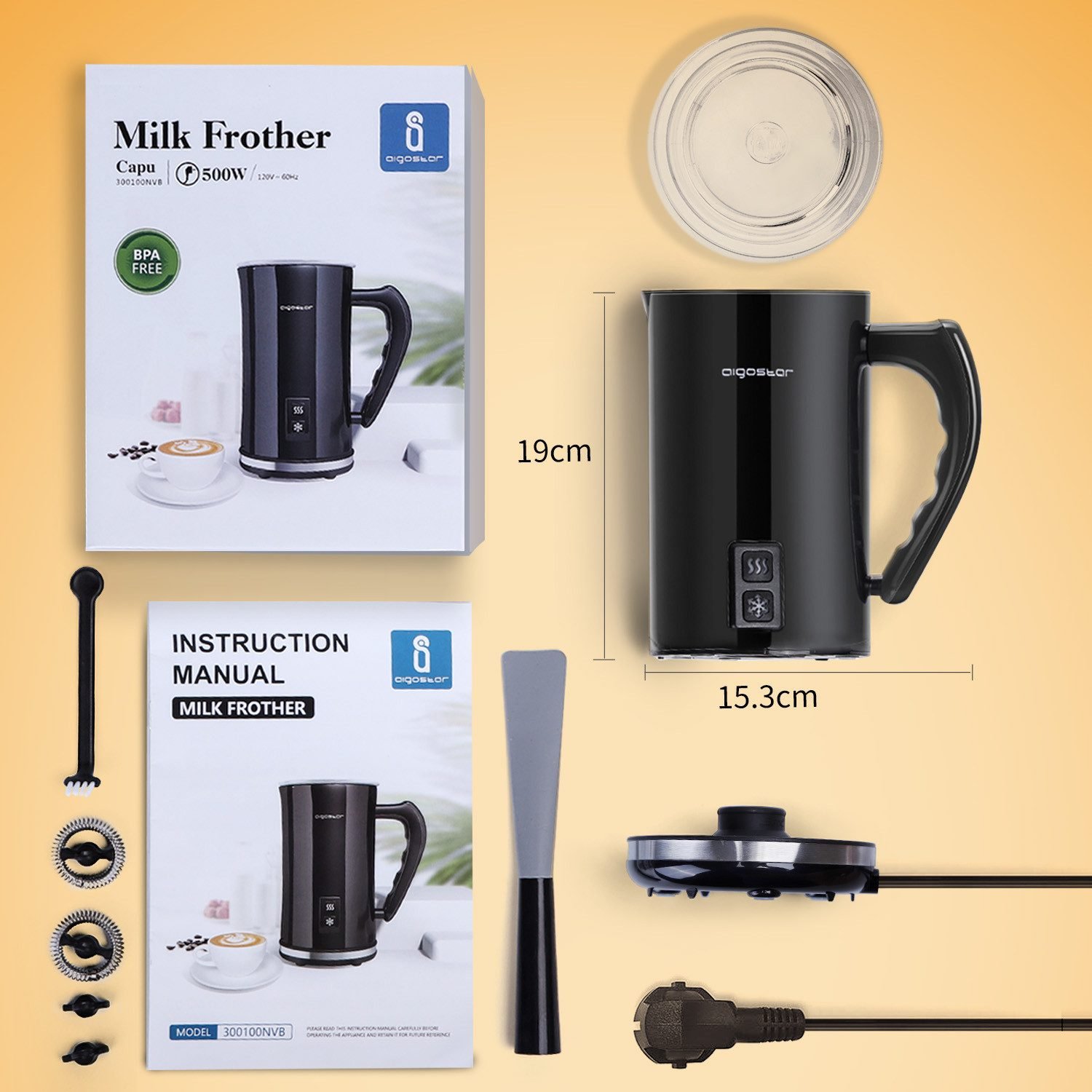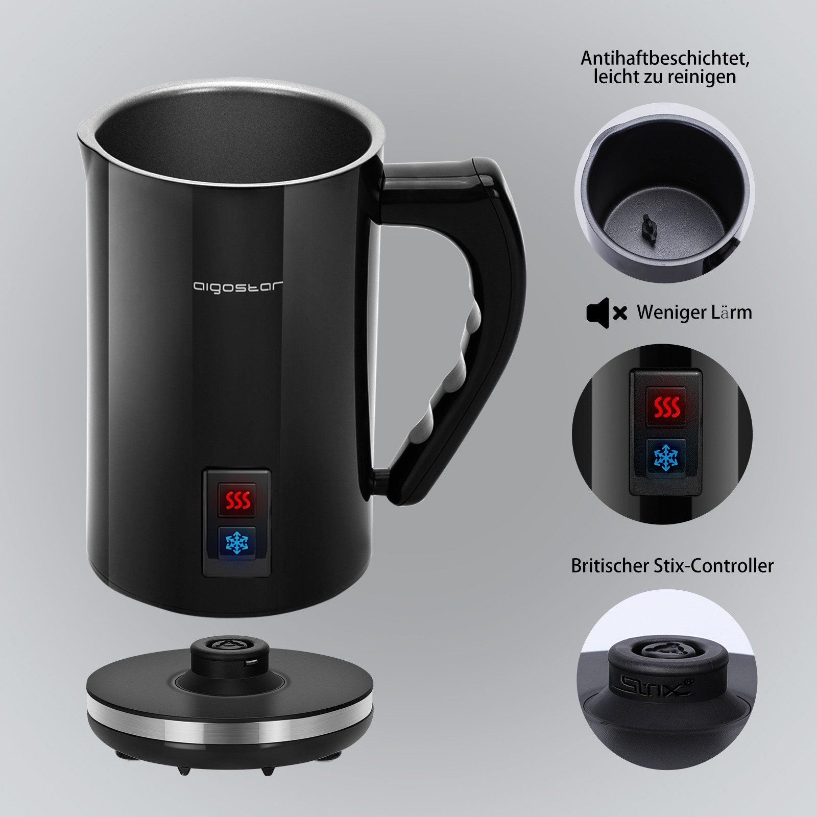 Aigostar Milchaufschäumer Milchaufschäumer Elektrisch 500W 240ml mit 3 Modi Aigostar Milchaufschäumer