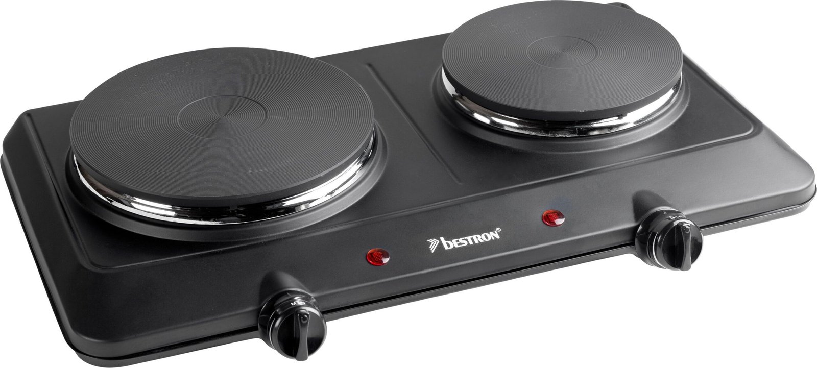 Praktische Doppelheizplatte zum Kochen, Braten und Warmhalten verschiedener Speisen – ideal für kleine Küchen, Garten und Balkon oder beim Camping. Schnelles Aufheizen dank stufenloser Temperaturregelung mit Thermostat, Clevere Leuchte zur Kontrolle des Vorgangs. Hochhitzebeständig lackiertes Gehäuse, Handliches und platzsparendes Design für den einfachen Transport und flexiblen Einsatz. Feste Position von Töpfen/Pfannen auf gerillten Gusseisenplatten, Antirutschfüße für einen sicheren Stand. Lieferumfang: 1 Bestron Kochplatte, Leistung: 2250 W, Ø Platten: 18/15 cm, Material: Gusseisen/Kunststoff, Maße: 45,5x29x8,7 cm, Gewicht: 3,87 kg, Farbe: Schwarz, AHP250D