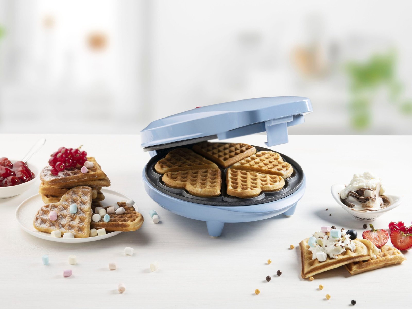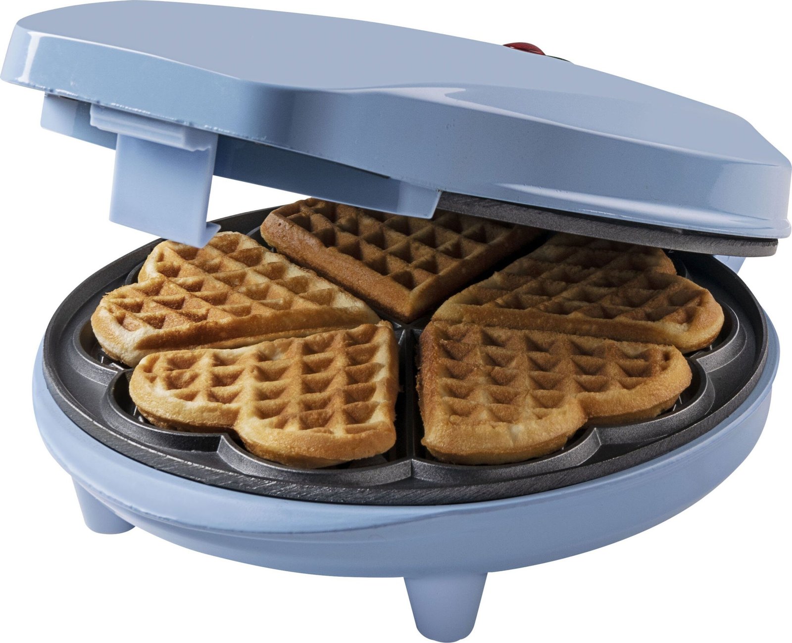 bestron Waffeleisen ASW217, 700 W, für klassische Herzwaffeln, mit Antihaftbeschichtung, Retro Design ASW217B blau bestron Herzwaffeleisen