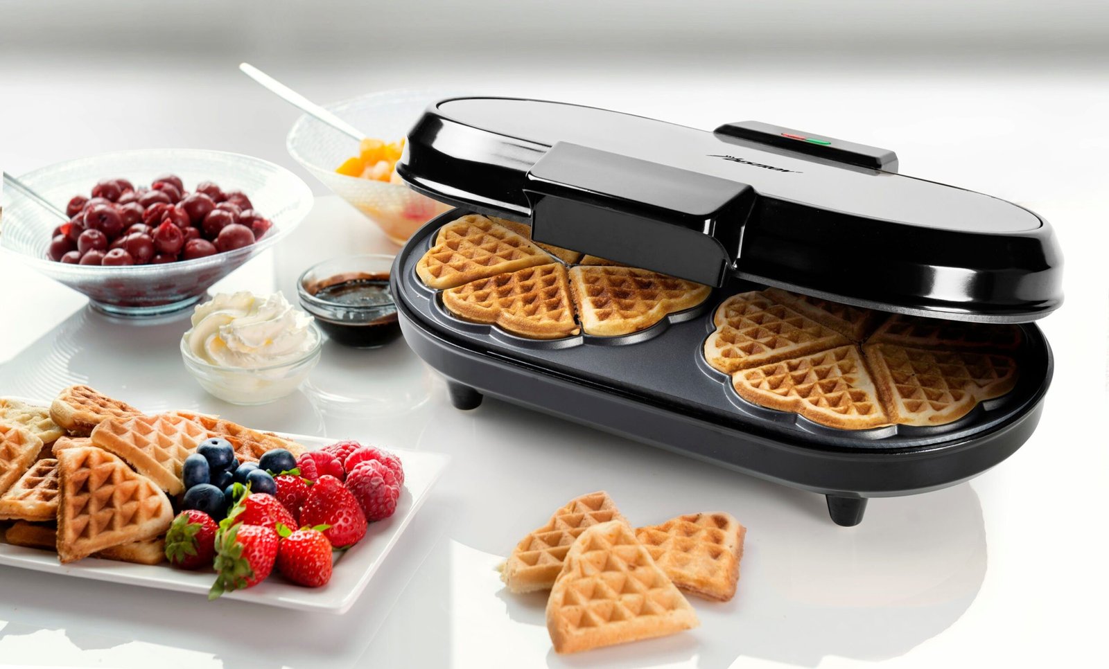 bestron Waffeleisen bestron 2-in-1-Kombi-Waffeleisen ADWM730S, 1200 W, Doppelwaffeleisen für Herzwaffeln, Backampel & Antihaftbeschichtung