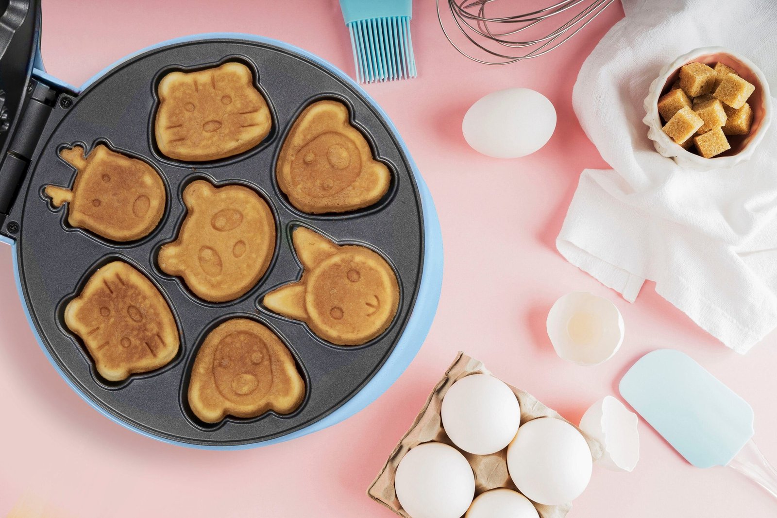 Dekorativer Mini-Cookie-Maker zum Backen von 7 süßen oder herzhaften Waffel-Keksen mit lustigen Tiermotiven – ideal für Kindergeburtstage, kleine Snacks oder für Ostern. Schnelles Aufheizen innerhalb weniger Minuten, Automatische Temperaturregelung inklusive Backampel für optimale Ergebnisse. Antihaftbeschichtung zum leichten Entnehmen der Speisen und zur einfachen Reinigung des Geräts, Platzsparende Kabelaufwicklung (Kabellänge: 75 cm). Sichere Nutzung auf dem Tisch dank Antirutschfüßen, hitzebeständigem Gehäuse mit wärmeisolierendem Griff. Lieferumfang: 1 Bestron Mini-Cookie-Maker, Leistung: 700 Watt, Gewicht: 1,45 kg, Material: Kunststoff/Metall, Maße: 28×11.2×22,5cm,