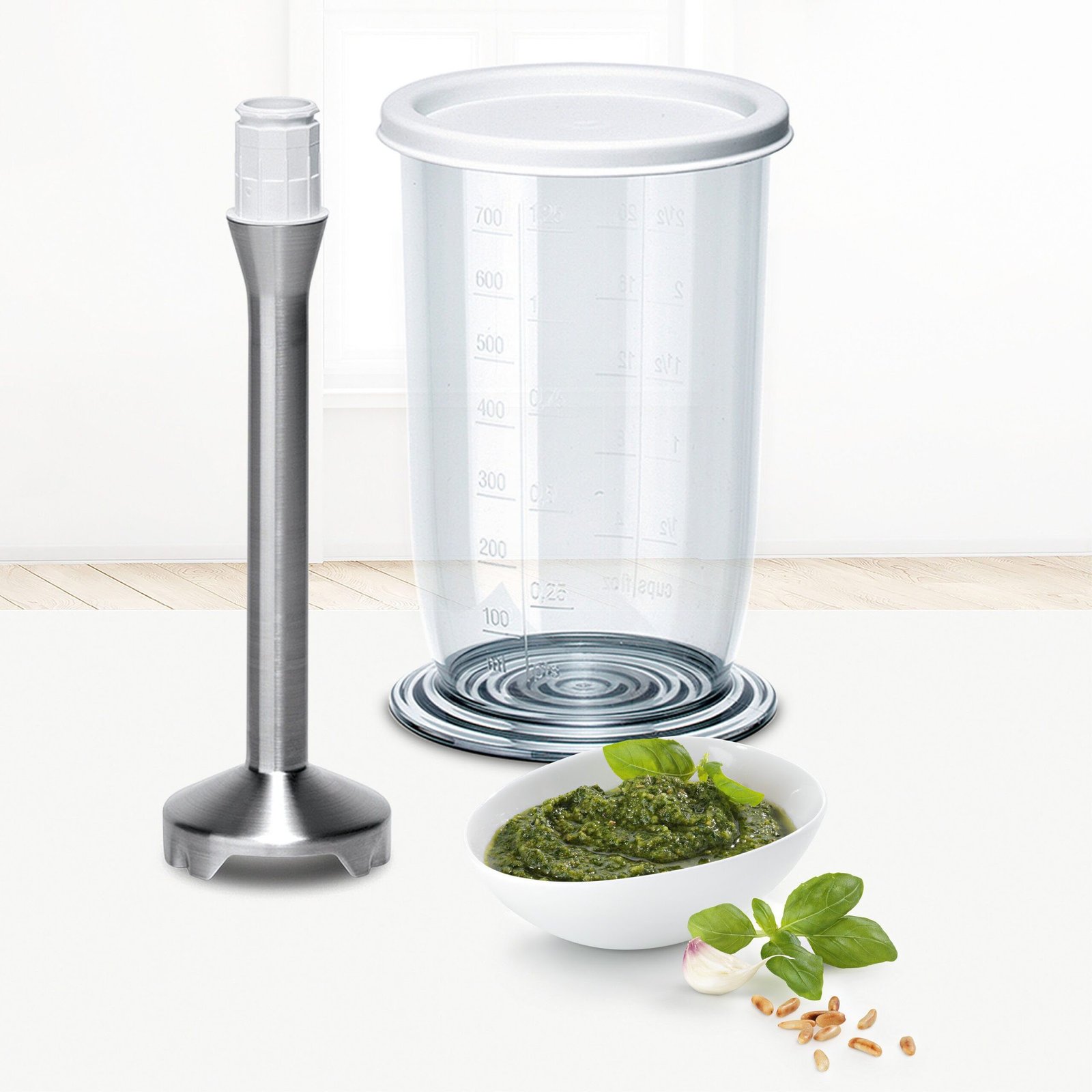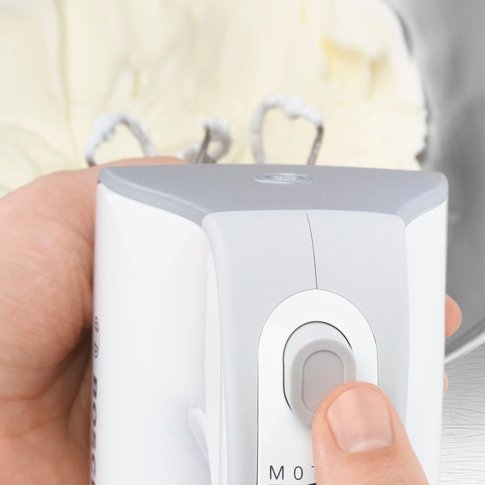 BOSCH Handmixer Styline MFQ4075DE, 2x Rührbesen, Knethaken Edelst., Mixfuß, weiß, 550 W, 5 Stufen, Turbotaste, Mixbecher, Made in Europe BOSCH Handmixer