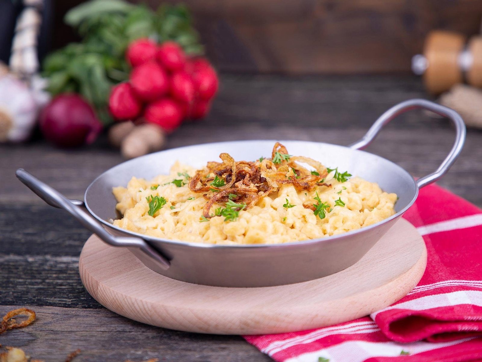 Das chg Schlemmerpfännchen (Ø = ca. 20 cm, h = ca. 4 cm) mit zwei Griffen inkl. Servierbrett (100% FSC zertifiziert, Ø 20,5 cm) zeichnet sich neben seinem rustikalen Aussehen insbesondere durch hervorragende Brateigenschaften aus, wie noch aus Großmutters Küche bekannt. Speisen, die darin zubereitet werden, behalten ihren natürlichen, unverfälschten Eigengeschmack. Robust und haltbar überdauern diese Kochgeschirre oftmals viele Jahrzehnte. Die Pfanne ist ideal für alles, was scharf an- und durchgebraten wird, z.B. für Steaks, Schnitzel, Bratenstücke, Röstkartoffeln, Fisch uvm. Mit der chg Eisenpfanne hast du den Spaß des Kochens nicht nur an einem Ort, sondern gleich an mehreren. Die Pfanne ist vielseitig einsetzbar. Ob auf dem Herd, im Backofen oder auf dem Grill, deine Speisen gelingen überall und können gleich in der originellen Pfanne serviert werden. Dank des hochwertigen Servierbretts aus Buchenholz mit Einfräsungen, ist das Set ideal dafür, Tellergerichte direkt zu servieren. / Für folgende Herdarten geeignet: Gas, Induktion, Halogen, Glaskeramik und Elektro sowie Backofen- und Grillgeeignet / Inkl. ausführlicher Gebrauchs- und Pflegeanleitung: Eisenpfannen müssen vor der ersten Benutzung eingebrannt werden / Ø Pfannenboden = ca. 23,0 cm. Made in Germany!