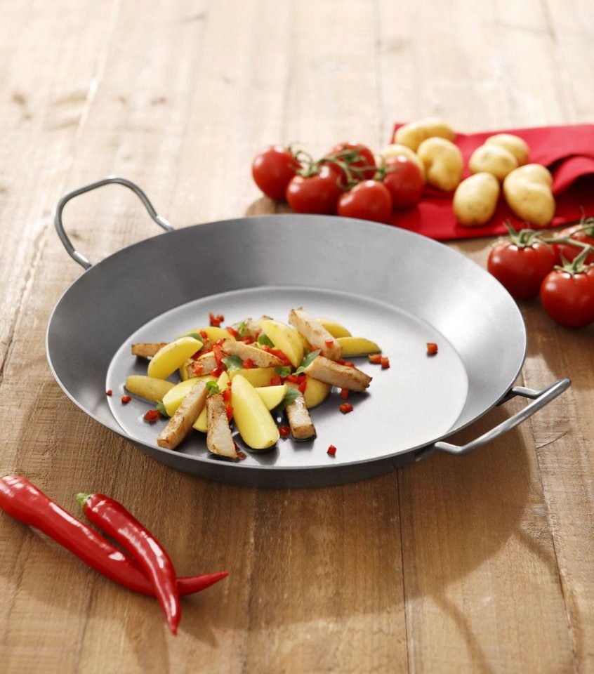 Die chg Eisenpfanne mit zwei Griffen zeichnet sich neben ihrem rustikalen Aussehen insbesondere durch hervorragende Brateigenschaften aus, wie noch aus Großmutters Küche bekannt. Speisen, die darin zubereitet werden, behalten ihren natürlichen, unverfälschten Eigengeschmack. Robust und haltbar überdauern diese Kochgeschirre oftmals viele Jahrzehnte. Die Pfanne ist ideal für alles, was scharf an- und durchgebraten wird, z.B. für Steaks, Schnitzel, Bratenstücke, Röstkartoffeln, Fisch uvm. Mit der chg Eisenpfanne hast du den Spaß des Kochens nicht nur an einem Ort, sondern gleich an mehreren. Die Pfanne ist vielseitig einsetzbar. Ob auf dem Herd, im Backofen oder auf dem Grill, deine Speisen gelingen überall und können gleich in der originellen Pfanne serviert werden. / Für folgende Herdarten geeignet: Gas, Induktion, Halogen, Glaskeramik und Elektro sowie Backofen- und Grillgeeignet / Inkl. ausführlicher Gebrauchs- und Pflegeanleitung: Eisenpfannen müssen vor der ersten Benutzung eingebrannt werden / Ø Pfannenboden = ca. 17,5 cm / Made in Germany!