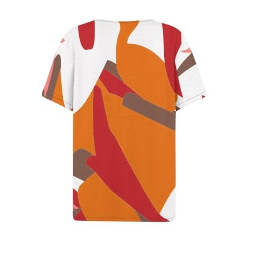 COTECRAM Summer Tops for Women 2024 Short Sleeve Button V Neck Tshirts Trendy Dressy Casual Blouses Loose Fit Graphic Tunics C Orange ‎womens T-Shirts AG