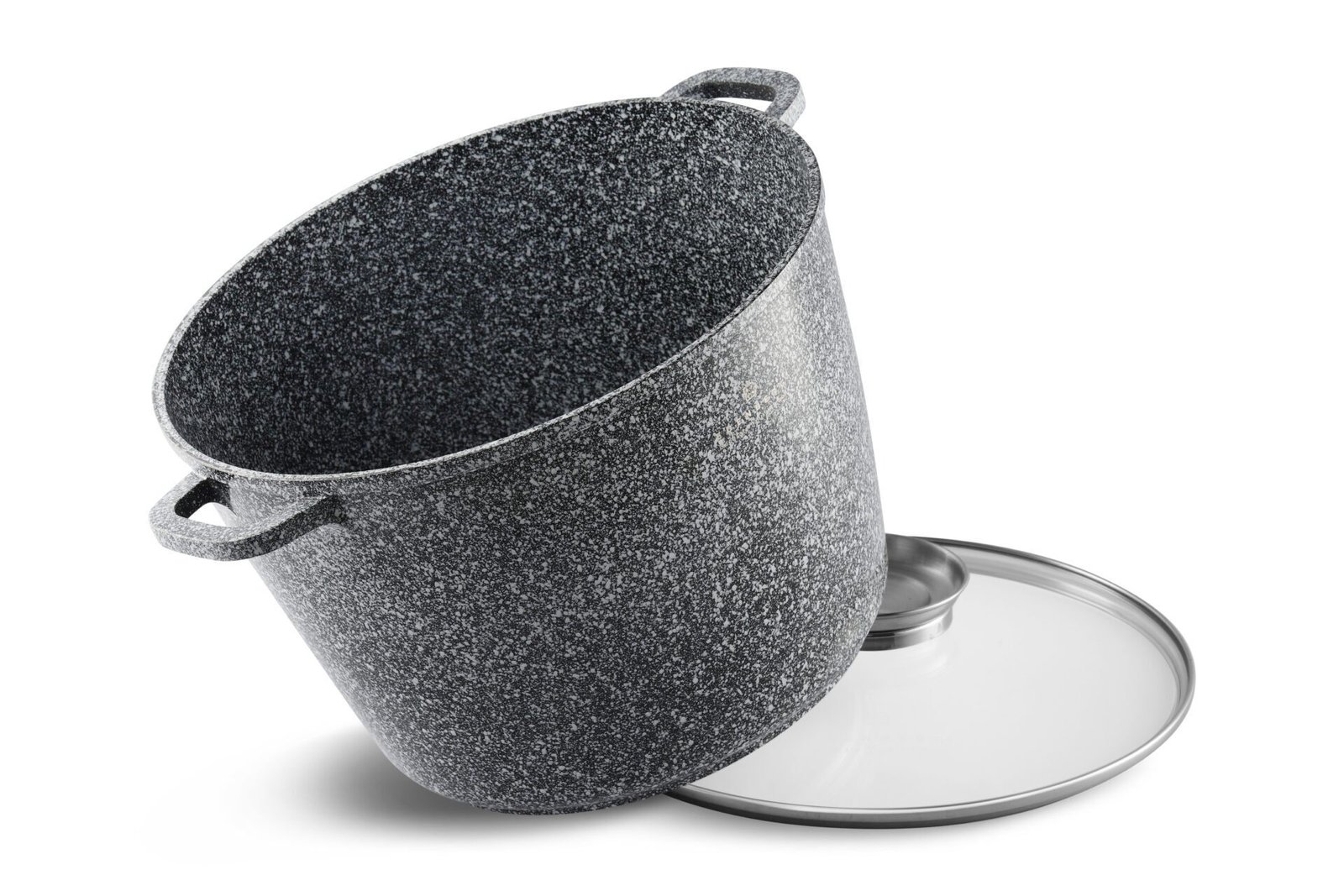 Tauch ein in kulinarische Exzellenz mit unseren einzigartigen marmorierten Töpfen, die Köche auf der ganzen Welt begeistern! Unsere Töpfe vereinen nicht nur Eleganz und Funktionalität, sondern garantieren auch höchste Qualität für zubereitete Gerichte. Unser Geheimnis liegt in der innovativen Technologie – die marmorierte Keramikbeschichtung, hergestellt mit fortschrittlicher Nanotechnologie, bildet eine antihaftende Schicht auf der Oberfläche des Topfes. Dadurch kannst du dich an exquisitem Geschmack von Gerichten erfreuen, ohne Angst vor Anhaften oder Reaktionen mit Lebensmitteln haben zu müssen. Die Vielseitigkeit unserer Töpfe macht sie zu einem unverzichtbaren Bestandteil jeder Küche. Egal, ob du auf einem Gasherd, Elektroherd, Glaskeramikkochfeld oder Induktionsherd kochst, unsere Töpfe werden deinen Erwartungen gerecht. Unser Glasdeckel mit Aroma-Knopf ist nicht nur eine praktische Lösung, sondern auch eine elegante Ergänzung für jede Küche. Zusätzlich mit einem Gewürzdosierer ausgestattet, ermöglicht er die Kontrolle über die Aromen deiner Gerichte. Die gleichmäßige Wärmeverteilung, die Öleinsparung, gesundes Kochen – all das bieten unsere Töpfe. Dank ihnen werden deine Gerichte immer perfekt zubereitet sein und du kannst den Geschmack deiner Lieblingsgerichte auf gesündere Weise genießen. Langlebigkeit und Beständigkeit sind weitere Vorteile unserer Töpfe. Geeignet für den täglichen Gebrauch, sind sie beständig gegen Abnutzung und hohe Temperaturen, was ihre langanhaltende Haltbarkeit und Zuverlässigkeit garantiert. Entdecke eine neue Dimension kulinarischer Erlebnisse mit unseren marmorierten Töpfen. Lass deine Küche mit Eleganz und Geschmack erstrahlen – wähle unsere Töpfe und koche mit Leidenschaft! Höchste Qualität der Speisen: Die marmorierte keramische Antihaftbeschichtung, die keine Reaktion mit Lebensmitteln eingeht, gewährleistet eine hervorragende Qualität der zubereiteten Gerichte. Innovative Technologie: Die Beschichtung, hergestellt mit Nanotechnologie, bildet eine dichte, kompakte und glatte Schicht auf der Oberfläche des Kochgeschirrs, was die Qualität der zubereiteten Speisen zusätzlich erhöht. Vielseitigkeit: Die Möglichkeit der Verwendung auf verschiedenen Arten von Herden, einschließlich Gas-, Elektro-, Keramik- und Induktionsherden, macht es zu einem praktischen Küchenwerkzeug für jedermann. Bequemer Deckel: Der gläserne Deckel mit Aroma-Knopf, zusätzlich ausgestattet mit einem Gewürzdosierer, erleichtert die Kontrolle über das kochende Gericht und das Hinzufügen von aromatischen Zutaten. Gleichmäßige Wärmeverteilung: Diese Töpfe verteilen die Hitze gleichmäßig und halten sie lange, was eine gleichmäßige Zubereitung der Speisen ermöglicht. Ölsparend: Die Möglichkeit des Kochens mit minimaler Ölmenge ermöglicht eine gesündere Zubereitung der Speisen und reduziert die Kalorien. Gesundes Kochen: Die Möglichkeit des Kochens und Backens von Speisen mit minimaler Menge an Fett oder Wasser trägt zu einem gesünderen Lebensstil und einer gesunden Ernährung bei. Langlebigkeit und Beständigkeit: Diese Töpfe sind resistent gegen Abnutzung und hohe Temperaturen, was ihre langfristige Haltbarkeit und Nutzung auch bei intensivem Gebrauch garantiert.