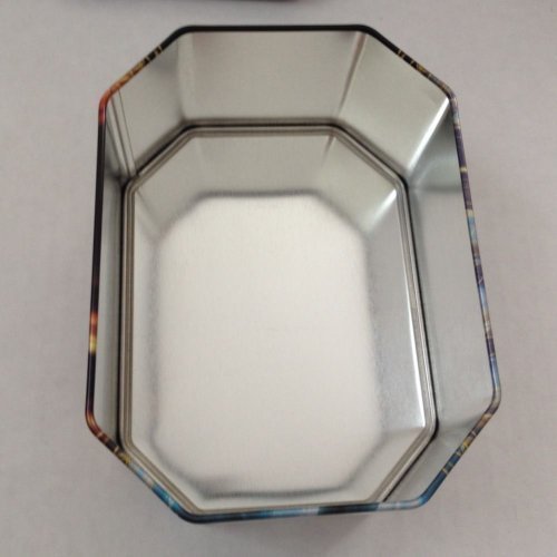 Tin size is 6 inches (long) by 4 and 1/2 inches (wide) by 3 inches (deep).