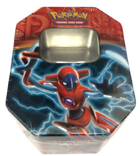 Empty, shrink-wrapped Deoxys Pokemon tin (metallic) for card storage. (No cards included.)