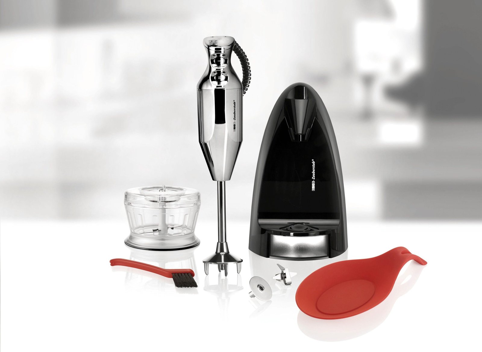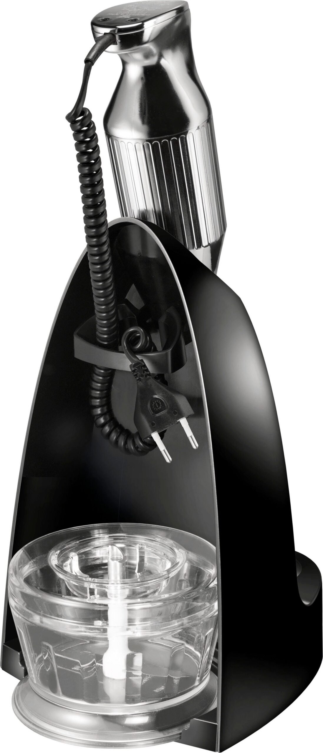 Reichlich Zubehör gehört zum ESGE-Zauberstab® M 200 Chrom. Multimesser und Schlagscheibe können in der kompakten Zauberbasis aufbewahrt werden, in der der Zauberstab griffbereit seinen Stammplatz auf der Arbeitsplatte bekommt. Das rundum-Paket umfasst auch den Zerkleinerer. Durch den Sicherheits-Twinschalter stehen wahlweise 12000 oder 17000 Umdrehungen pro Minute zur Verfügung – für den langlebigen, robusten AC-Motor „Made in Switzerland“ kein Problem.