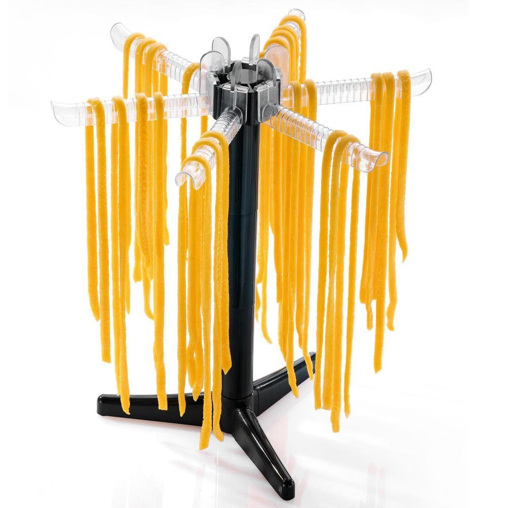 Basta Pasta heißt es ab sofort mit dem praktischen Pastatrockner, der – wie eine Wäschespinnen im Miniformat – mit sechs Trocken-Armen genügend Platz zum Trocknen für Spagetti und Co. bietet. Besonders praktisch: Die Arme sind abnehmbar, so dass die Nudeln direkt von der Pastamaschine aufgenommen werden können. Nach dem Gebrauch einfach in der Spülmaschine reinigen und zur platzsparenden Aufbewahrung zerlegen. Basta.