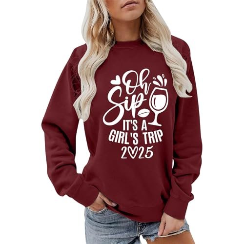 Buy original Heevina It’s A Girl’s Trip 2025 Sweatshirt For Women Wine Glass Than Therapy Printed Crewneck Sweatshirts Pullover Scope! Graduation gifts