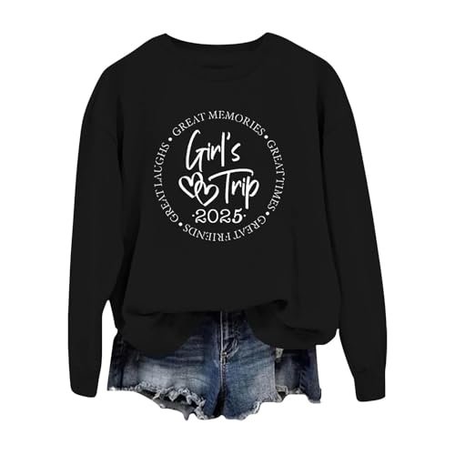 Heevina It’s A Girl’s Trip 2025 Sweatshirt For Women Wine Glass Than Therapy Printed Crewneck Sweatshirts Pullover Medium ‎womens Sweaters AG