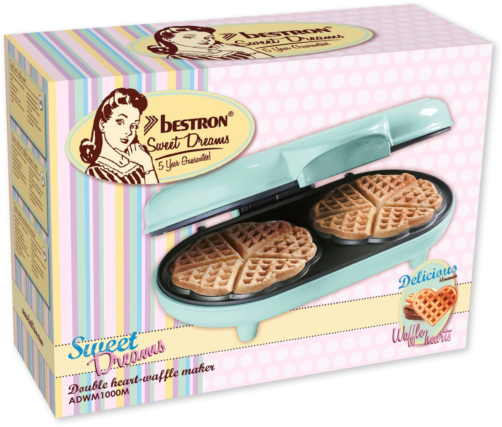 in 2024 bestron Waffeleisen ADWM1000M, 1000 W, Doppel-Waffeleisen für klassische Herzwaffeln, Antihaftbeschichtung Shop online now