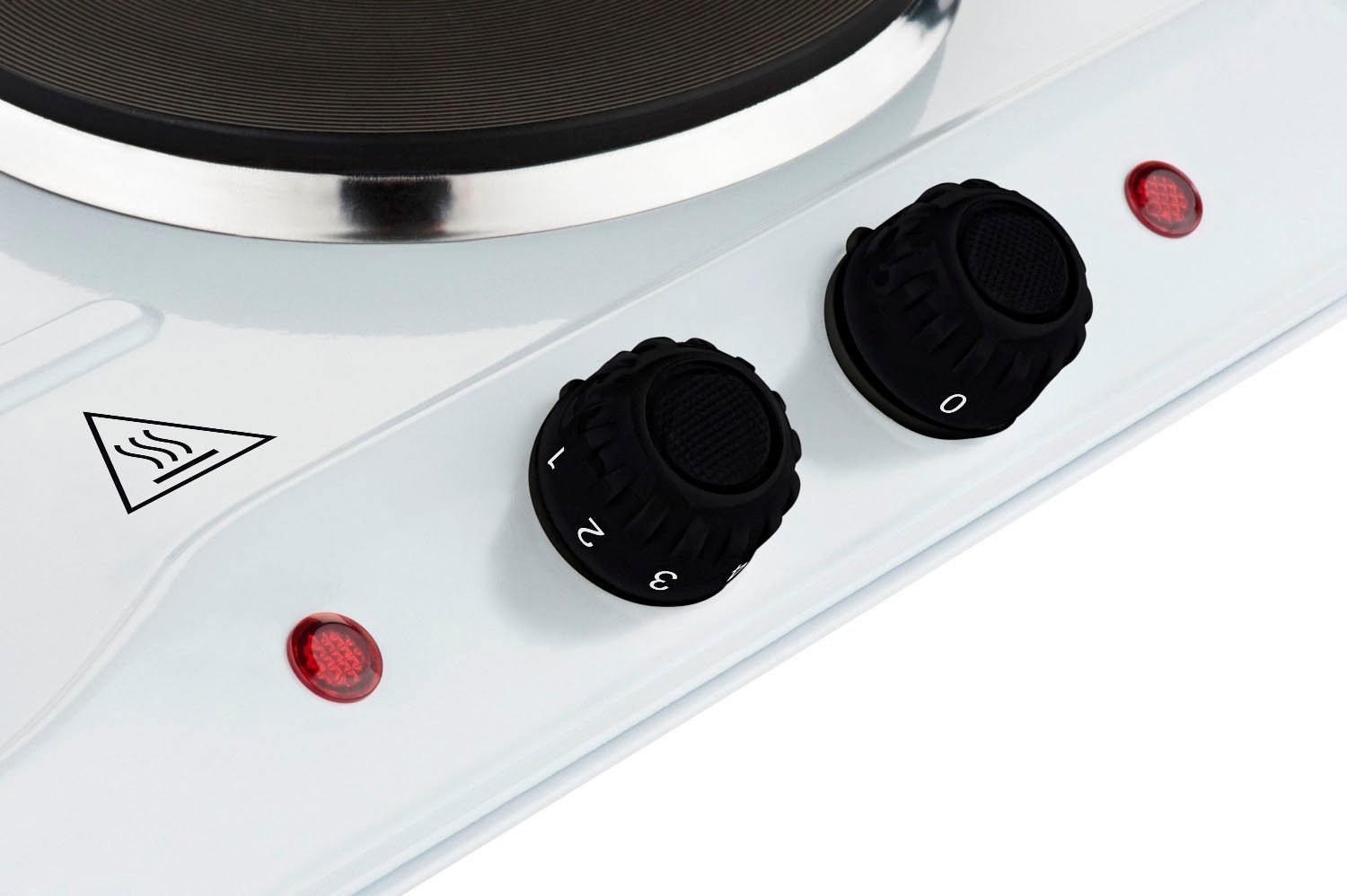 Doppelkochplatte HYUEP310W, 2500W, 2 Gussplatten mit einem Durchmesser von 18,5 cm / 1 500 W a 15,5 cm/1 000 W, Thermosicherung, Betriebskontrolleuchte, rutchfeste Füsse. Leistungsaufnahme: 2 500 W, 2 Gussplatten mit einem Durchmesser von 18,5 cm / 1 500 W a 15,5 cm/1 000 W, Stufenlos, Betriebskontrolleuchte, Leicht abwaschbare Oberfläche, Überhitzungsschutz durch Thermosicherungen, Rutschfeste Füße, Kabellänge 0,8 m