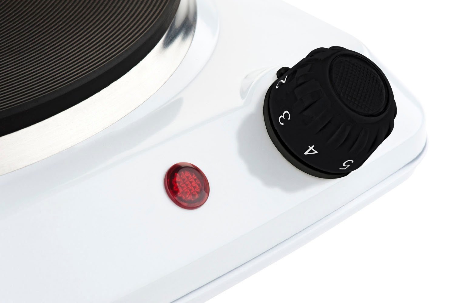 Einzelkochhplatte HYUEP110W, Gussplatte 1500W, Durchmesser 18,5cm, Leichtabwaschbar, Thermosicherung, Kontrolleuchte, Rutchfeste Füsse für Standfestigkeit. Leistungsaufnahme: 1 500 W, Gussplatte mit einem Durchmesser von 18,5 cm, Stufenlos, Betriebskontrolleuchte, Leicht abwaschbare Oberfläche, Sicherheitsschutz gegen Überhitzung, Kabellänge 0,8 m.