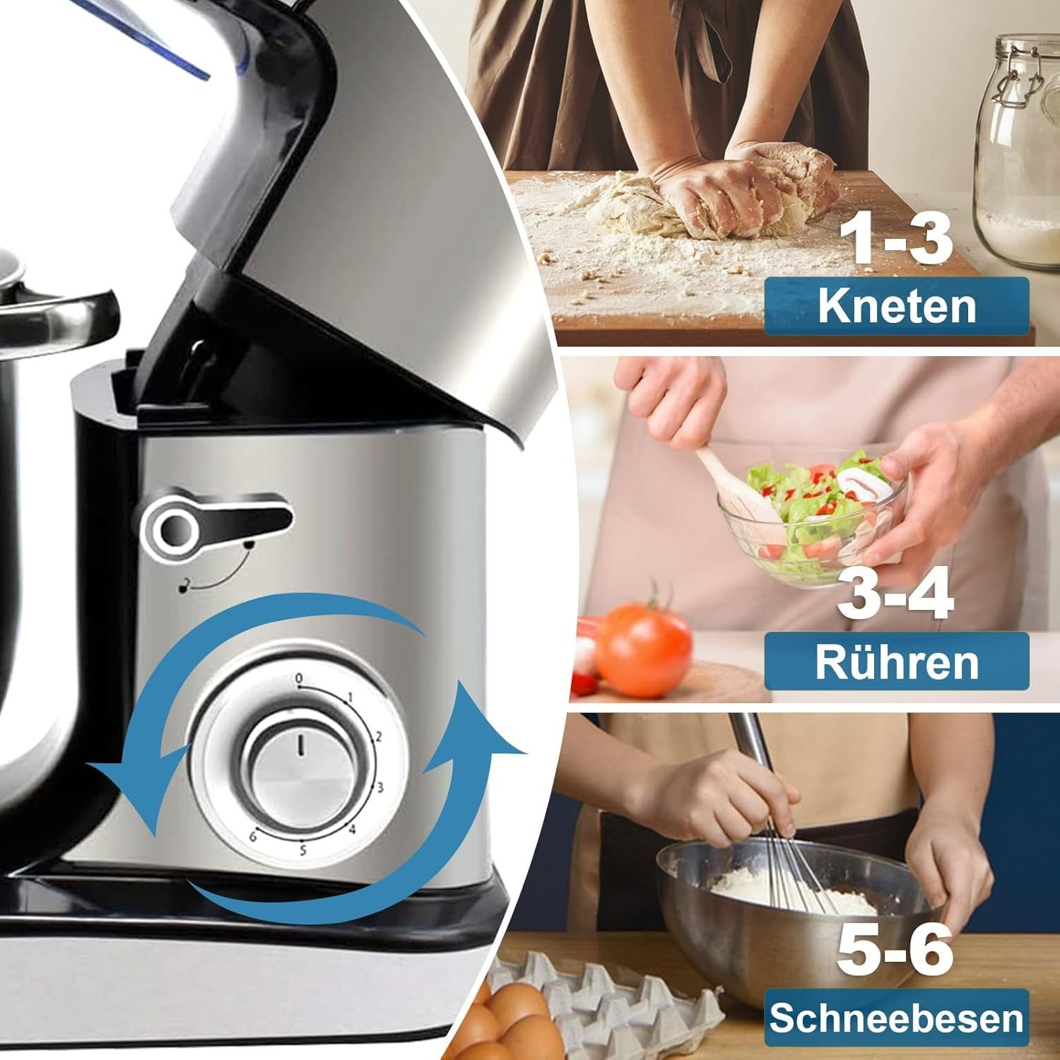 Kitchen Pro + Multifunktionsküchenmaschinen Kitchen Pro + Küchenmaschine 4 in 1 Küchenmaschine, Knetmaschine mit 10L Edelstahl-Schüssel, 2500,00 W, 10,00 l Schüssel