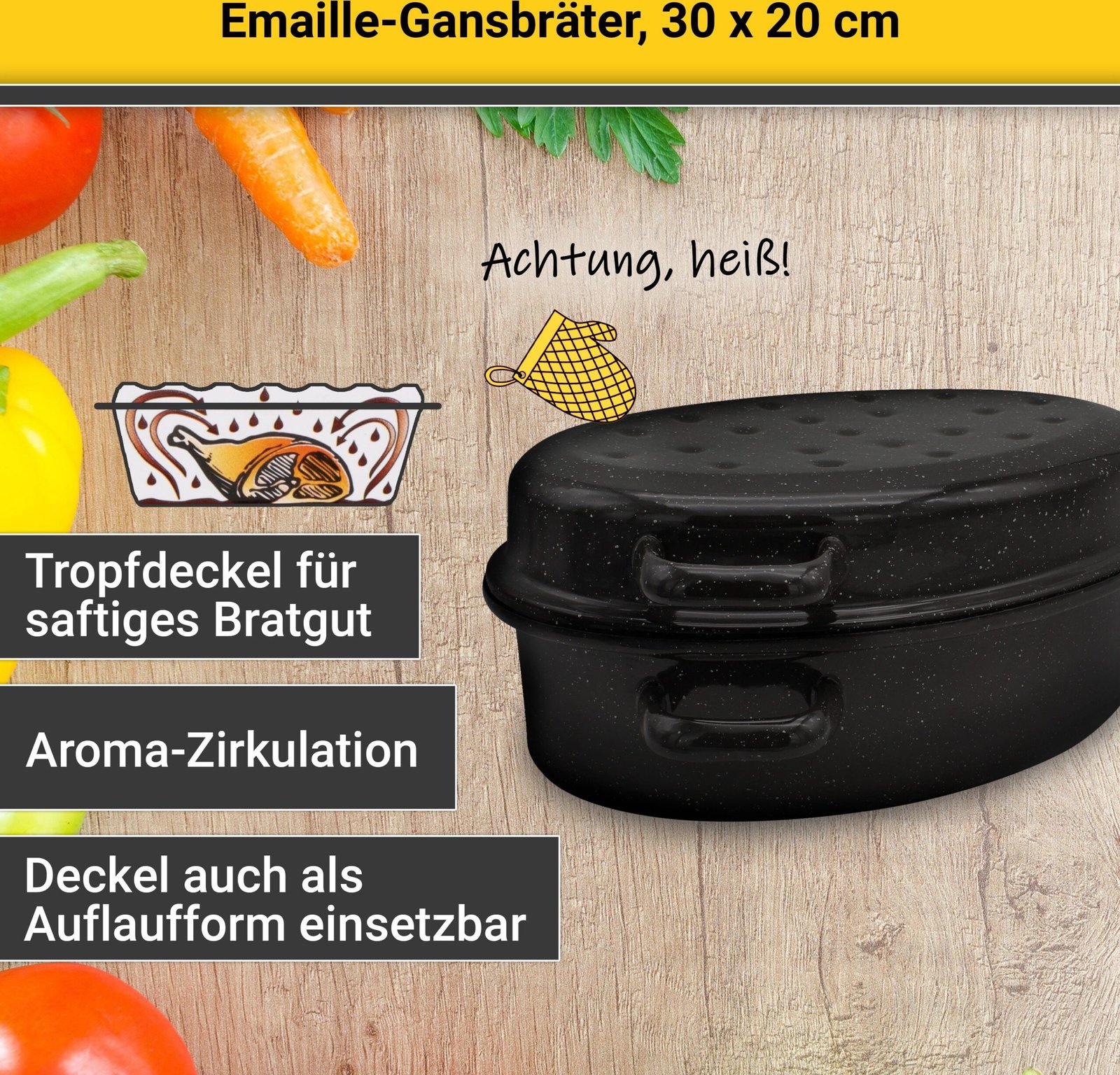 Kru00FCger Bräter Krüger Bräter Gansbräter mit Tropfdeckel, Emaille, für Induktions-Kochfelder geeignet