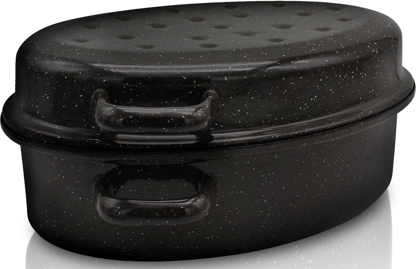 Stylish Krüger Bräter Gansbräter mit Tropfdeckel, Emaille, für Induktions-Kochfelder geeignet Buy the latest