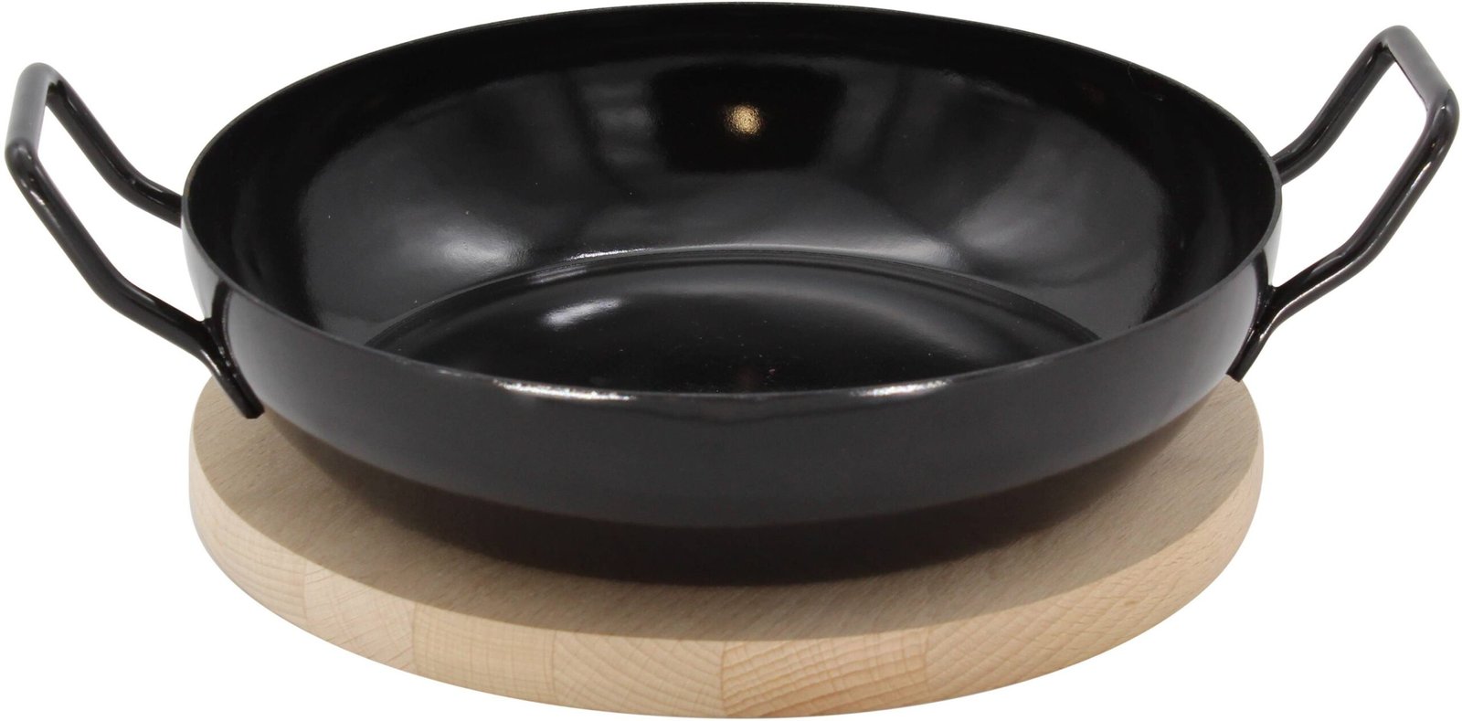 Das Material Emaille wird aus natürlichen Rohstoffen hergestellt. Alle Lebensmittel behalten in diesem Kochgeschirr ihren natürlichen und reinen Geschmack. Außerdem ist Emaille ideal für Allergiker geeignet. Die porenfreie, glatte Oberfläche ist bakterien- und schmutzabweisend und ermöglicht so eine optimale Hygiene im Haushalt. Mit dem widerstandsfähigen und pflegeleichten Kochgeschirr aus Emaille werden Sie bei sachgemäßem Gebrauch und richtiger Pflege lange Freude haben. Zudem ist die Schlemmerpfanne für alle Herdarten auch für Induktionskochfelder geeignet. Der praktische Holzteller eignet sich hervorragend zum Servieren (nicht für den Bachofen geeignet!)