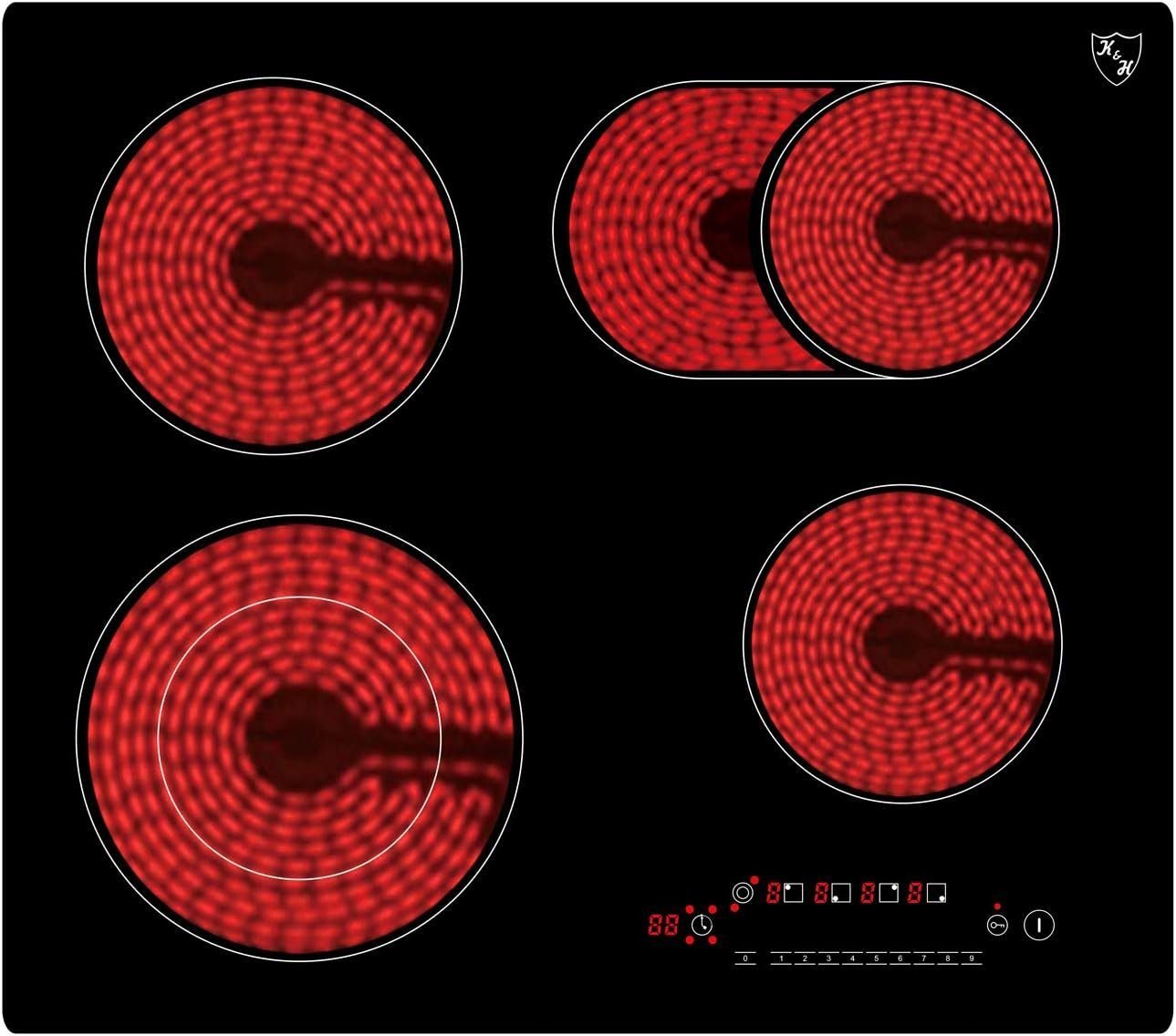 Shop conveniently K&H Elektro-Kochfeld K&H® 4 Zonen Glaskeramikkochfeld 59cm Elektro Autark Eingebaut NC-7206, Einbaufähig und Autark Choose your new one