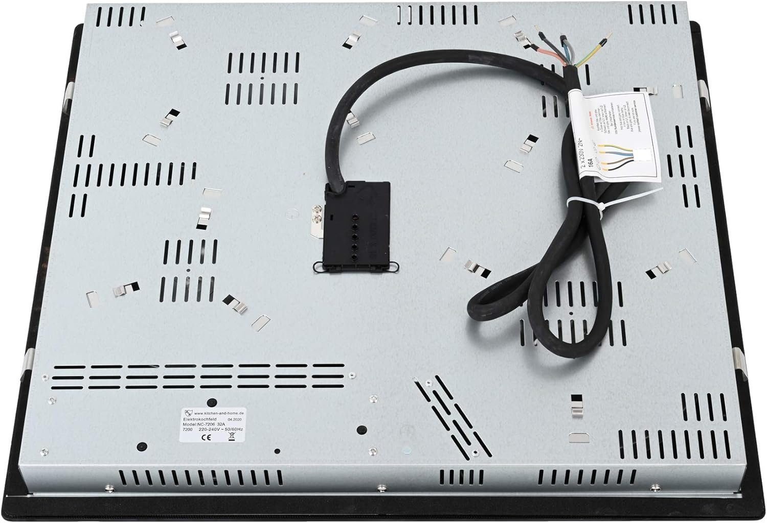 • Maße, Gewicht: 590 x 520 x 56mm;11kg • Anschluss an STARKSTROM 2N~220 Volt, Spannung: 220-240V, 50/60 Hz • 9 Leistungsstufen pro Kochzone, Leistung: 7200W • Timerfunktion pro Kochzone: 0-99 Minuten in 1 Minuten-Intervall • Digitalanzeige pro Kochzone + Timer • Einbaufähig, Kabellänge: ca.1,50m • Hochwertige Glaskeramik Oberfläche, SENSOR Touch-Control-Steuerung, Lieferumfang: 4 Einbauclipse • 7200 WATT LEISTUNGSSTARKES ELEKTROKOCHFELD – SENSOR Touch-Control-Steuerung in 9 Leistungsstufen pro Kochzone mit einer max. Leistung von 2200/1100W (225/140mm), 1800W(190mm), 2000/900(225/150mm), 1200W(155mm). • FÜR JEDES KOCHGESCHIRR GEEIGNET – Kompatibel mit jeder Art von Kochgeschirr. • EINZIGARTIGES DESIGN – All unsere Kochfelder werden von uns designiert. Die Kochfelder besitzen eine hochwertige Glaskeramik Oberfläche und eine Restwärmeanzeige • UMWELTFREUNDLICH – Umweltfreundliche Verpackung in Wabenpappe + Stand-by unter 1Watt. Volle Watt Zahl – Keine Beschränkungen. • QUALITÄT & REPARATUR – Die Qualität unserer Produkte wird stetig verbessert und wir versuchen eine maximale Lebensdauer unserer Produkte zu gewährleisten. Dadurch das wir ein in Deutschland ansässiges Unternehmen sind werden alle Repataturen bei uns in Löhne vor Ort vorgenommen.