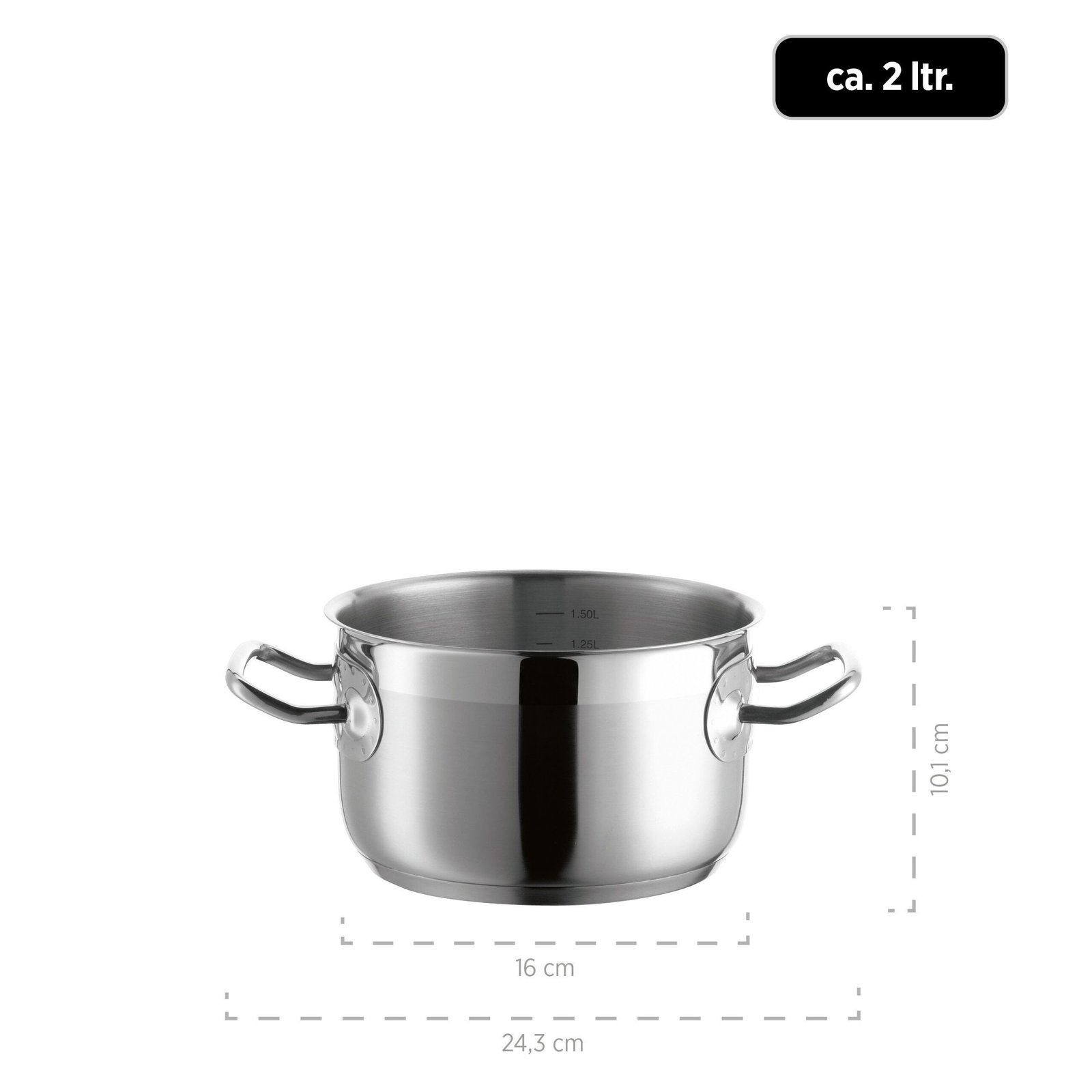 PROFESSIONAL I – die Serie für den Profi und alle Hobbyköche mit besonderen Ansprüchen. Die umfangreiche Serie aus hochwertigem Edelstahl 18/10 glänzt mit tollen Produkteigenschaften: Verkapselter Sandwichboden 5mm mit optimaler Hitzeverteilung, und hitzebeständige Griffe. Selbstverständlich sind alle Teile induktionsfähig, backofenfest bis 240°C und spülmaschinengeeignet. Zusätzlich zu Kochtöpfen in diversen Ausführungen und Größen bietet die Serie noch Bratpfannen mit oder ohne Beschichtung. Insgesamt hält die Serie eine große Auswahl von verschiedenen Artikeln für Sie bereit.
