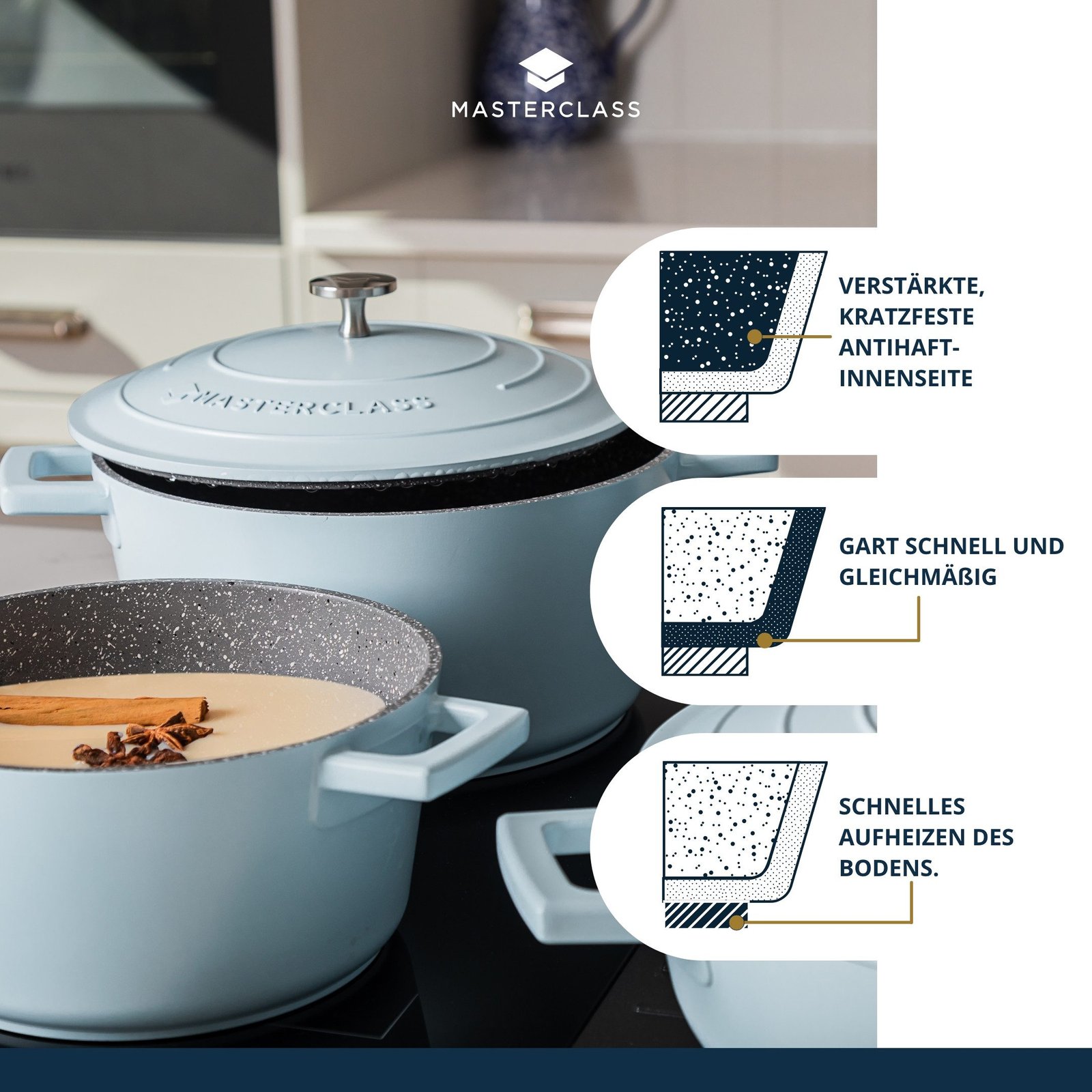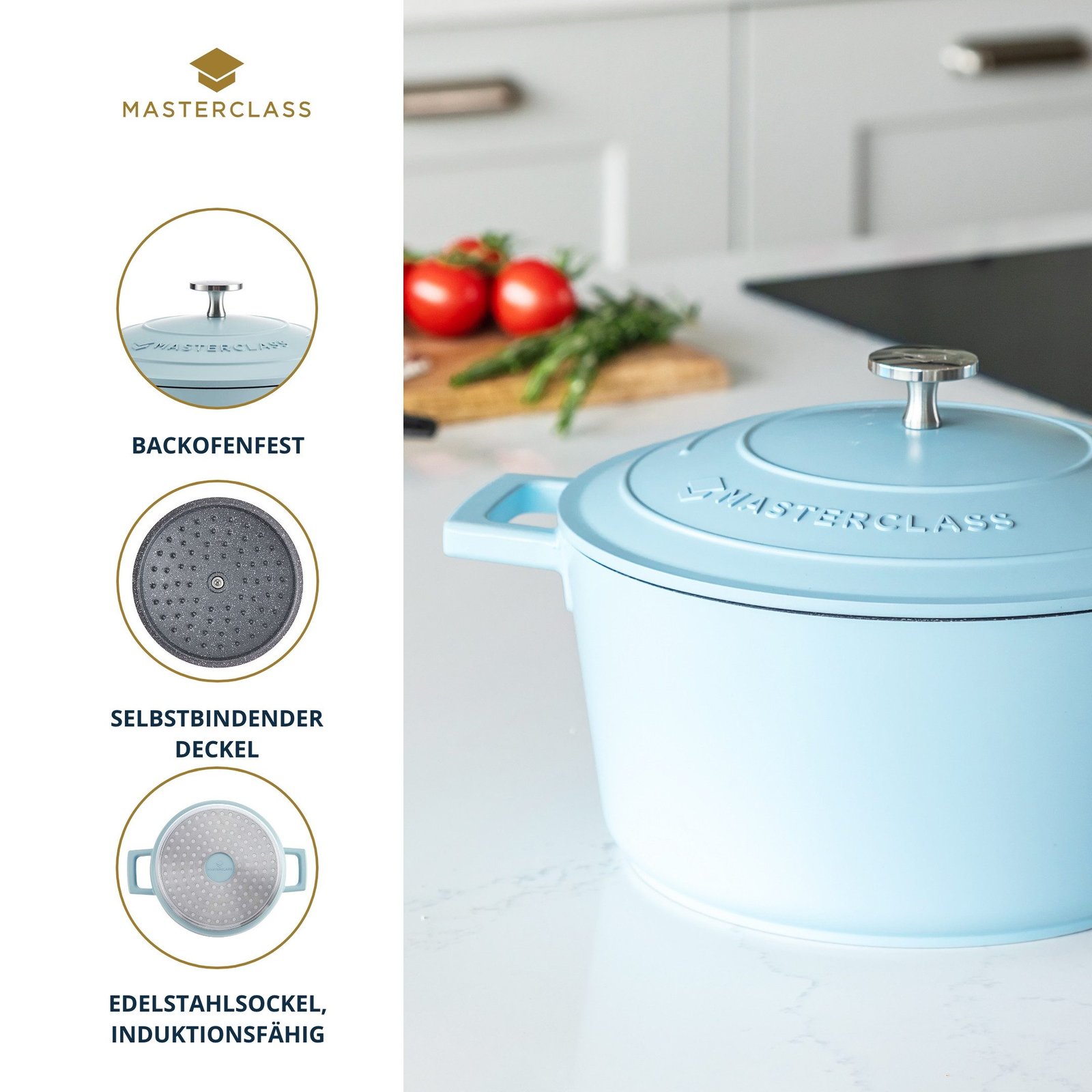 MasterClass Kasserolle MasterClass, Aluminiumguss, 4 Liter, rund, ultraleicht, kratzfeste Antihaftbeschichtung, Induktion Himmelblau Kasserollen MasterClass