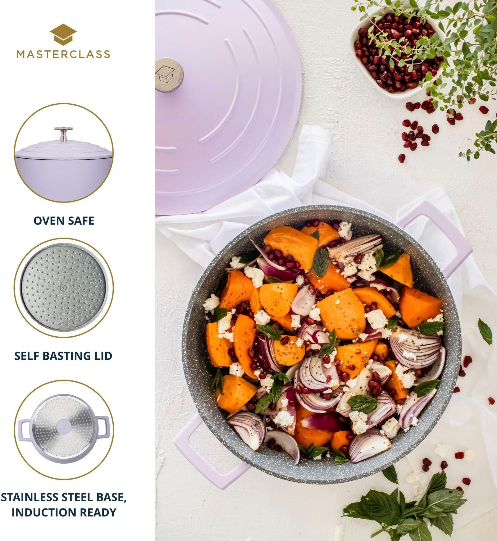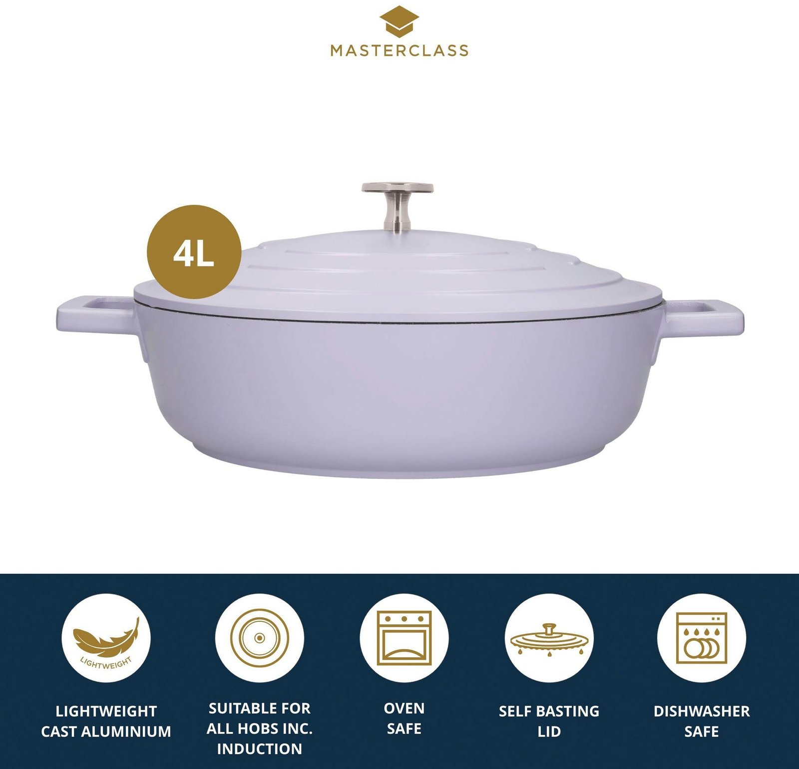 MasterClass Kasserolle MasterClass, Aluminiumguss, flach, 2,5 L, ultraleicht, kratzfeste Antihaftbeschichtung, Induktion Lavendel Kasserollen MasterClass