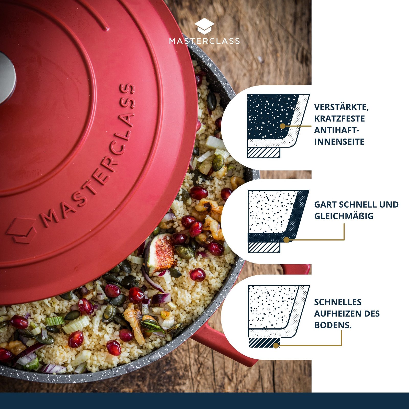 MasterClass MasterClass Kasserolle MasterClass, Aluminiumguss, 2,5 Liter, rund, ultraleicht,kratzfeste Antihaftbeschichtung,Induktion Rot Kasserollen