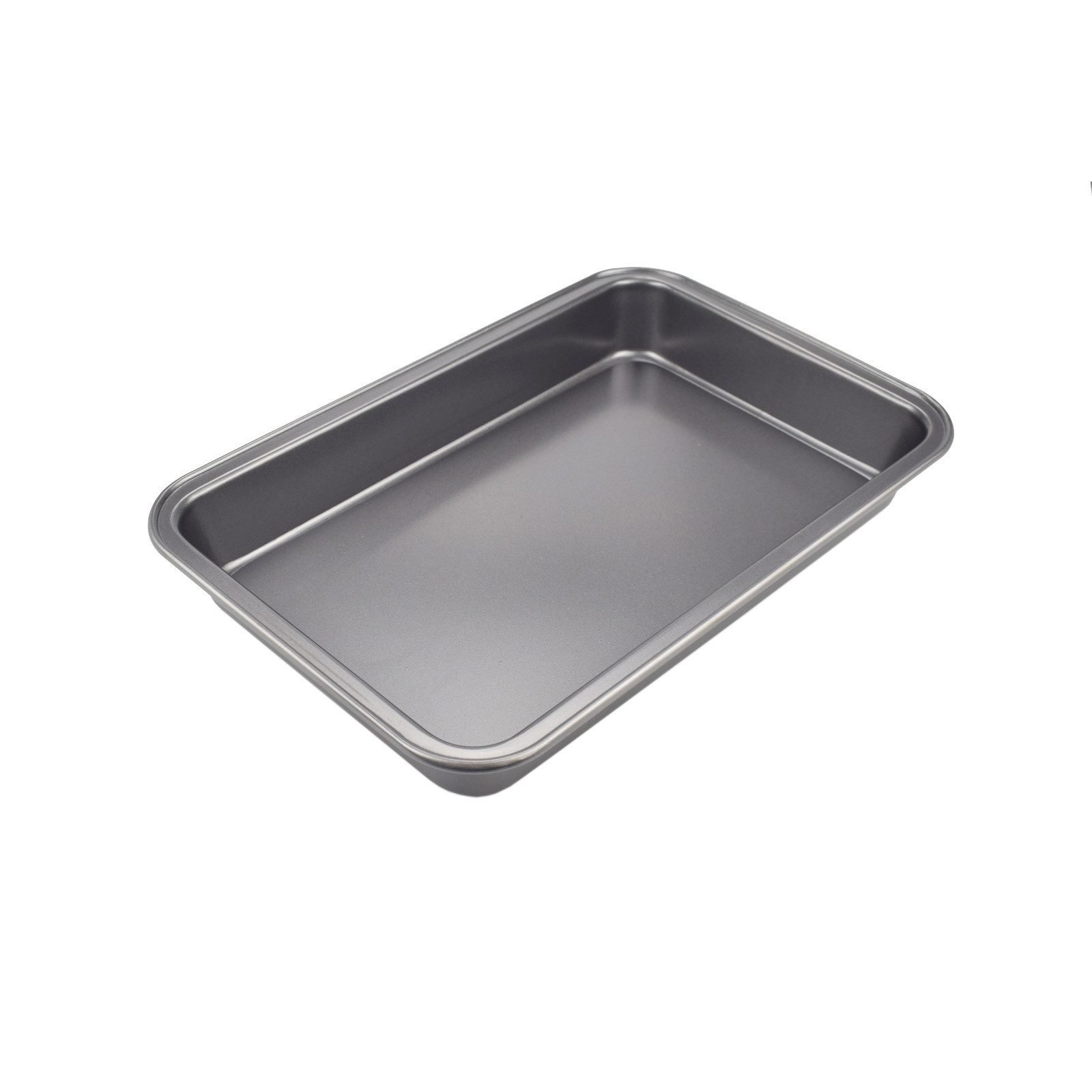 Bratenform mit Antihaftbeschichtung in Grau, außen hitzebeständige Lackierung in grau. Maße 33x23x4 cm (L/B/H)