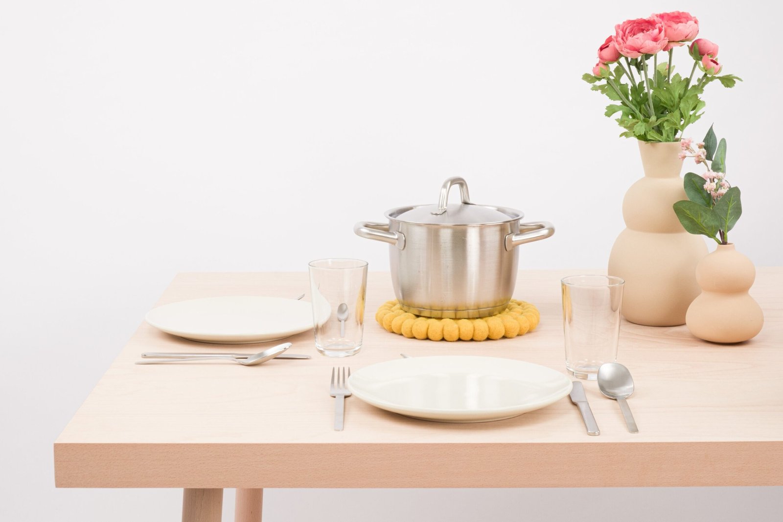 myfelt Topfuntersetzer aus reiner Schurwolle schützen nicht nur empfindliche Oberflächen, sondern sorgen mit ihrem verspielten Design auch für eine charmante Optik. myfelt Topfuntersetzer sind hochgradig wasser- und schmutzabweisend sowie hitzebeständig bis 330 °C und können beidseitig verwendet werden.