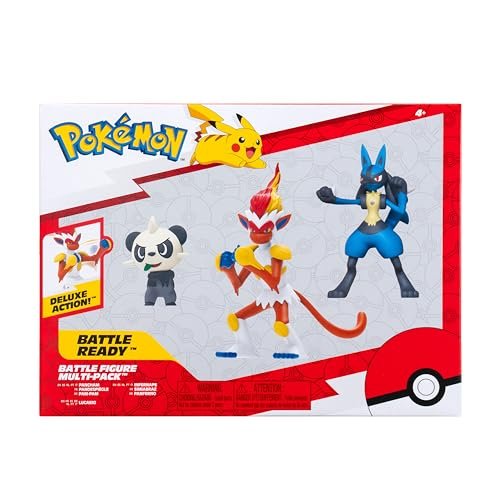 ICONIC POKÉMON: Pack includes 2-inch Pancham, 3-inch Lucario, and 4.5-inch Infernape
