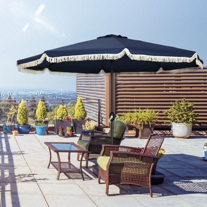 Protections solaires extérieures Outsunny Parasol rond 2,68 m bleu nuit