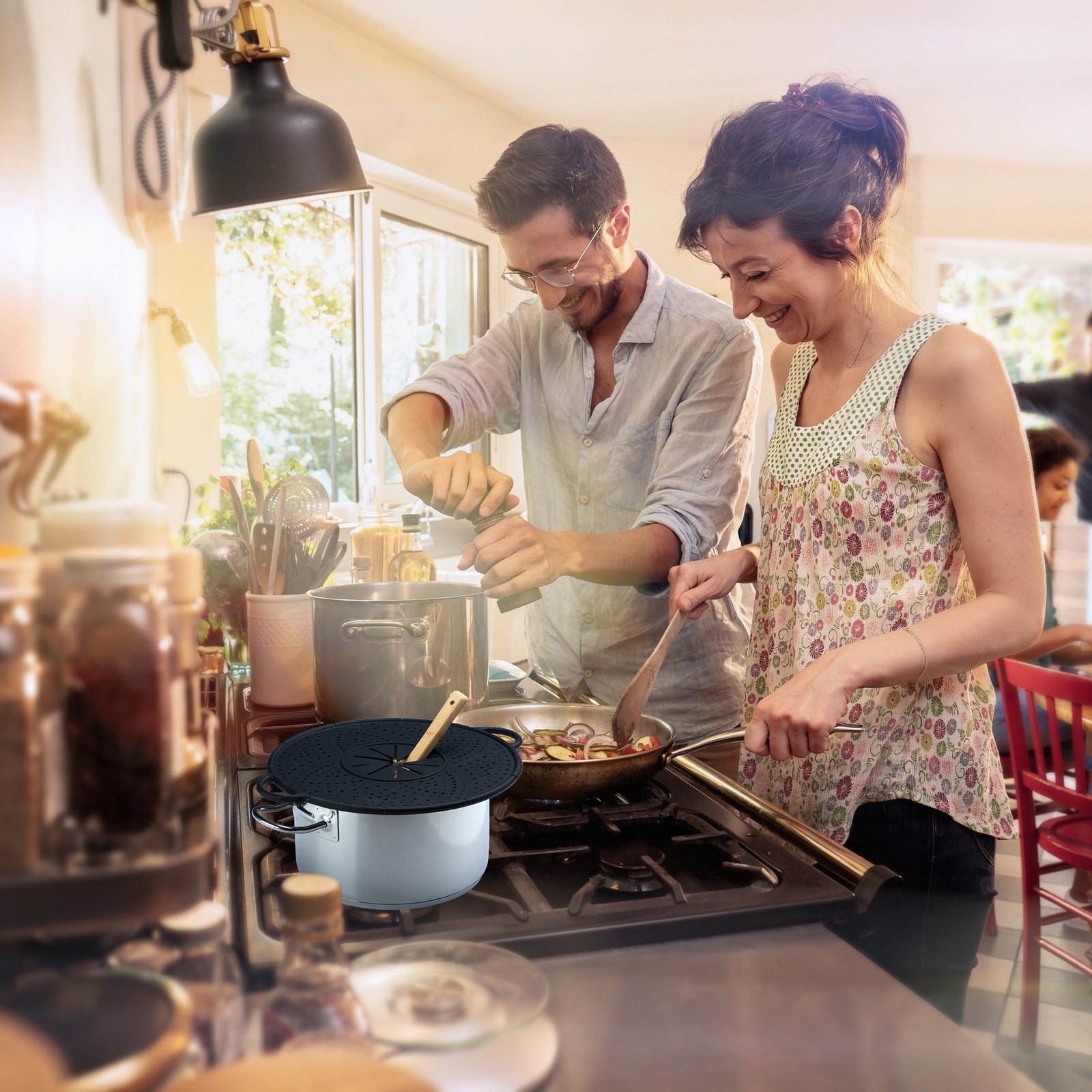 Wenn Sie keine Freude an klappernden Topfdeckeln und überkochenden Speisen auf Ihren Herdplatten haben, ist der Überkochschutz der passende Küchenhelfer für Sie. Durch die Löcher können Dampf und heiße Luft problemlos entweichen. Auch der Griff zu Mixer und Rührschüssel endet dank des vielseitigen Silikondeckels nicht in einem klebrigen Chaos an Ihren Fliesen. Da der Überlaufschutz hitzebeständig ist, kann er auch als Backblech für Pizzen genutzt werden. Um den Überkochstopp zu reinigen, reicht es aus, ihn in die Spülmaschine zu geben.