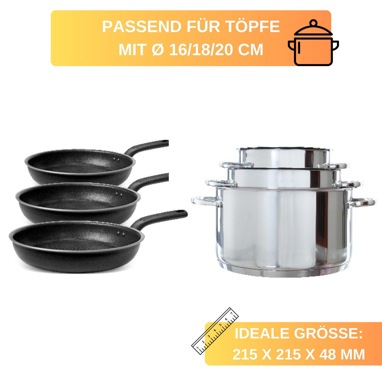 Entdecke den Thiru Universal-Deckel – die Lösung für deine Küchenbedürfnisse! Dieser Deckel ist perfekt für Töpfe mit einem Durchmesser von 24, 26 oder 28 cm geeignet und bietet dank seines Silikonrands eine universelle Passform. Der rutschfeste Silikongriff bleibt kühl und bietet eine angenehme Handhabung. Sein stabiler Stand ermöglicht ein müheloses Ablegen während des Kochens. Hitzebeständig bis zu 200°C, kannst du ihn sorgenfrei in der Küche verwenden. Spülmaschinengeeignet und BPA-frei für eine einfache Reinigung und deine Gesundheit. Mit 5 Jahren Garantie ist dieser Deckel nicht nur praktisch, sondern auch langlebig. Entdecke jetzt den Thiru Universal-Deckel und erlebe unkompliziertes Kochen auf höchstem Niveau!