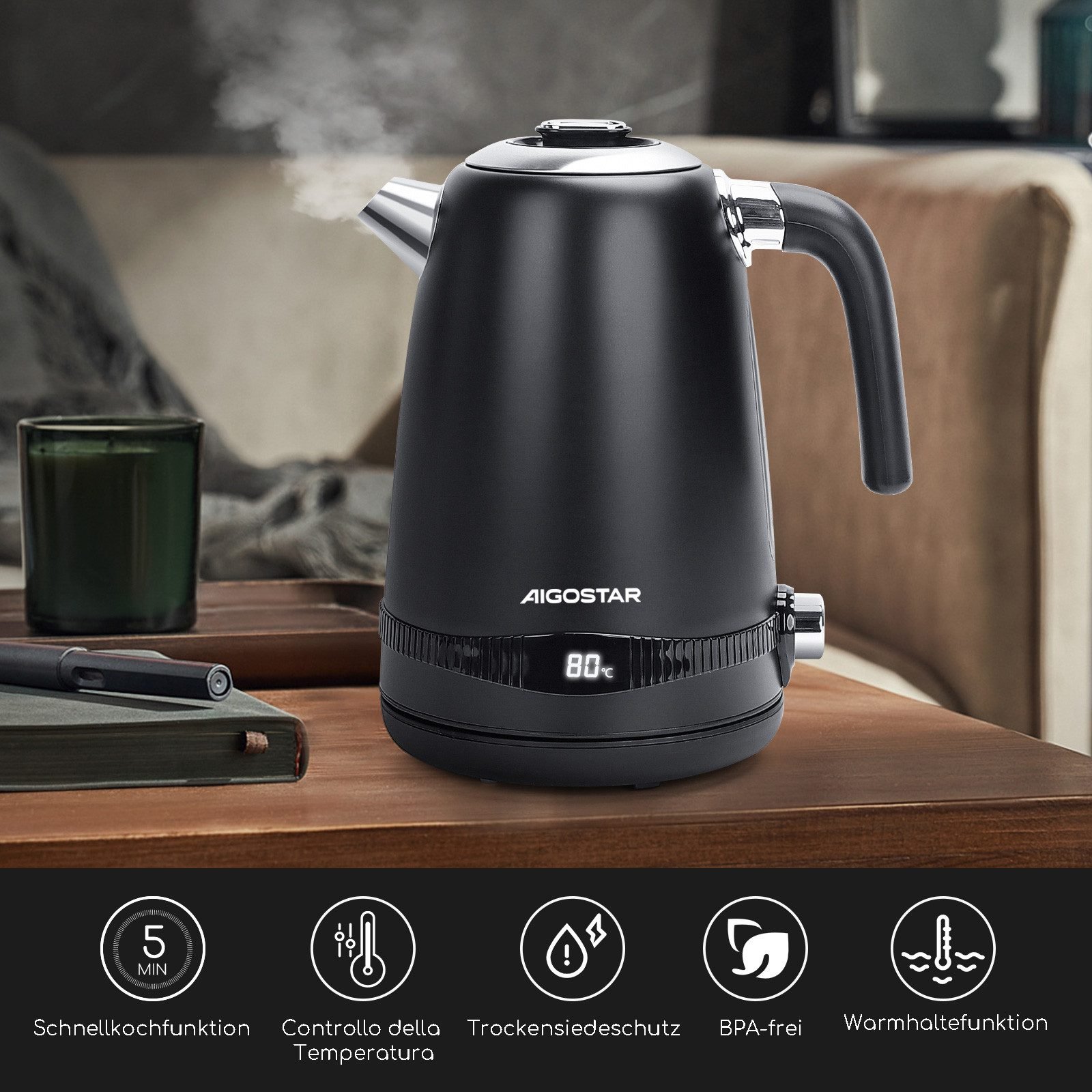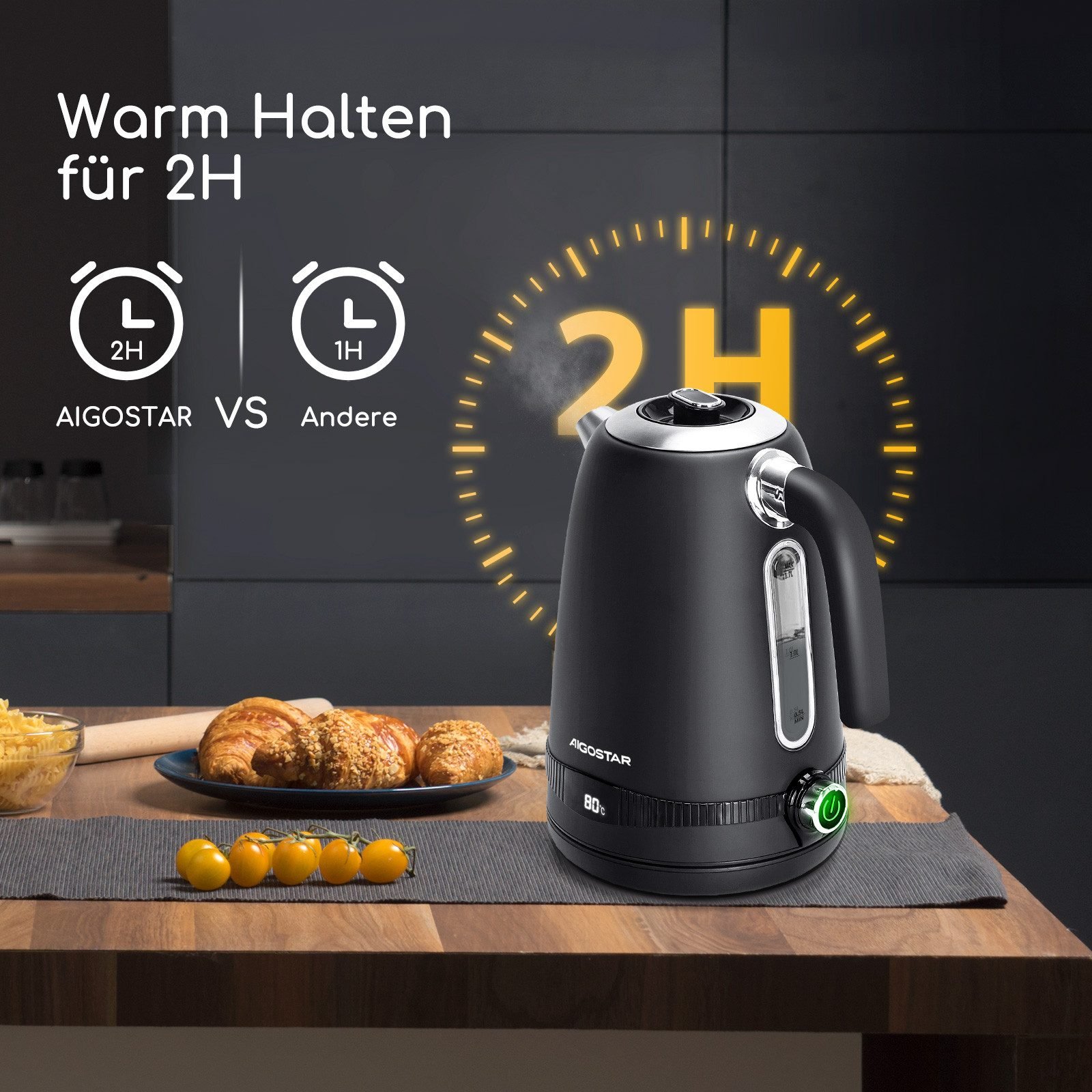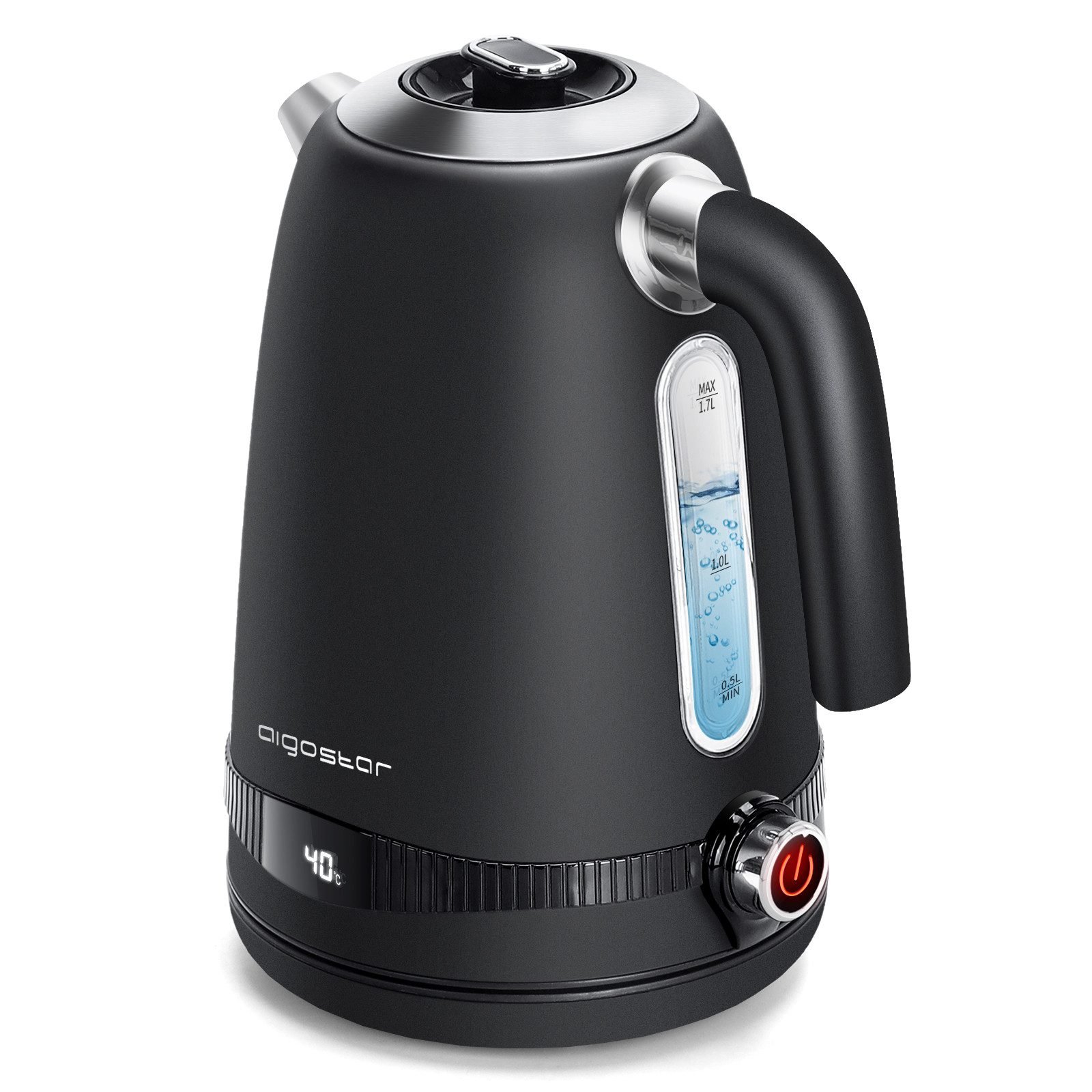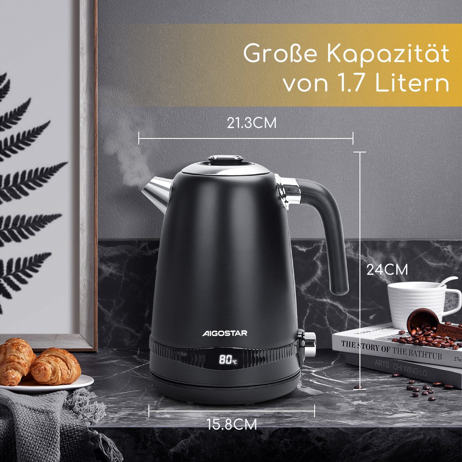 Wasserkocher Aigostar Aigostar Wasserkocher Digitaler Edelstahl Wasserkocher mit Temperatureinstellung 40-100 Grad, 2200,00 W, elektronische Temperaturregelung Schwarz