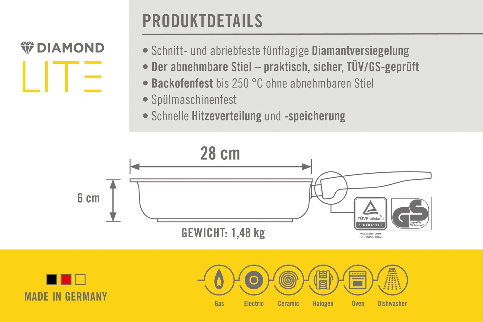 WOLL Bratpfannen WOLL Bratpfanne Diamond Lite, Aluminiumguss (1-tlg), 28 x 28 cm, Induktion, Made in Germany