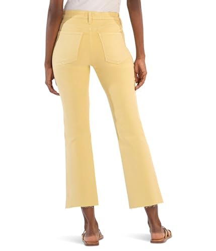 ‎womens Jeans AG KUT from the Kloth Kelsey High-Rise Fab Ab Ankle Flare with Raw Hem in Lemon – Jeans for Women – Cotton Fabric Lemon