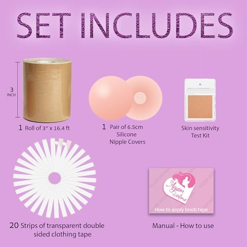 ‎womens Lingerie, Sleep & Lounge AG Boobtape for Breast Lift, Body Tape, Nipple Covers – Large Breasts, A-G Cup – 20 Double-Sided Clothing Tape Nude 3 Inc