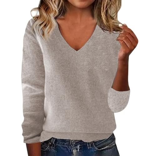 ‎womens Sweaters AG Cashmere Sweaters for Women 2025 Trendy Merino Wool V Neck Sweater Long Sleeve Pullover Tops Wool Knitted Sweaters Khaki