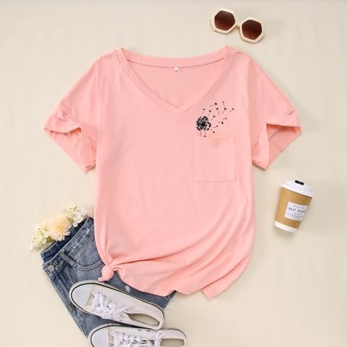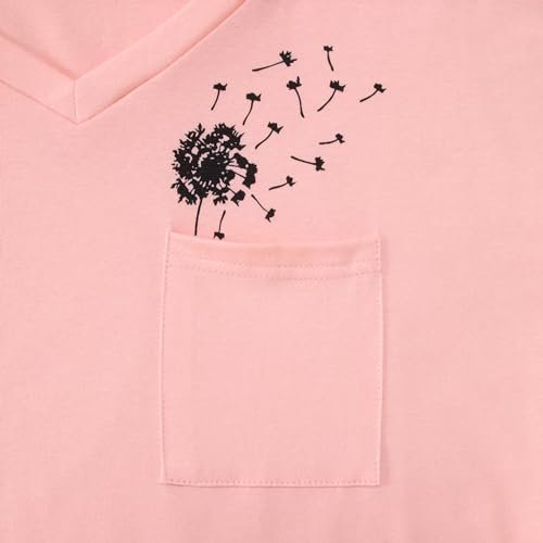 Womens T-Shirt Dandelion Flower Shirts Cute Graphic V Neck Summer Tees with Pocket Casual Short Sleeve Tops Pink ‎womens Tops, Tees & Blouses AG