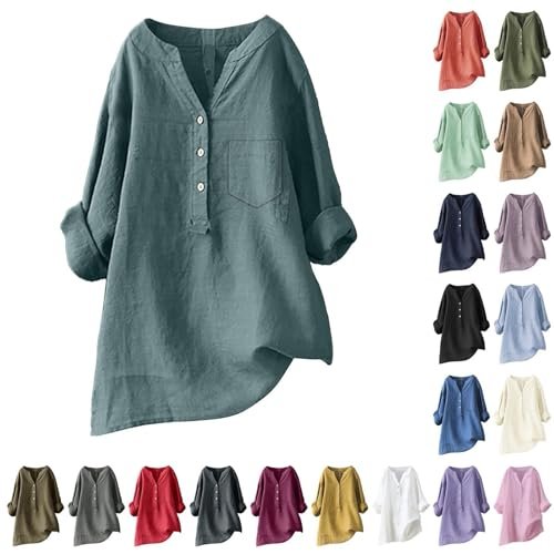 ‎womens Tops, Tees & Blouses AG Fall Tops for Women Oversized Cotton V Neck Button Down Blouses Solid Pile Collar Long Sleeve Pullover Tops X-Large