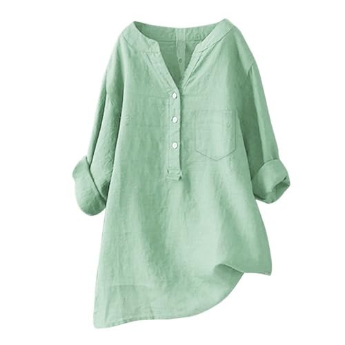 ‎womens Tops, Tees & Blouses AG Women Casual V Neck Stand Up Collar Button Cotton Shirts Long Sleeve Loose Fit Blouse Tunic Top with Pockets 3X-Large
