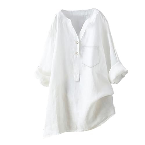 ‎womens Tops, Tees & Blouses AG Women Casual V Neck Stand Up Collar Button Cotton Shirts Long Sleeve Loose Fit Blouse Tunic Top with Pockets 3X-Large