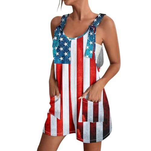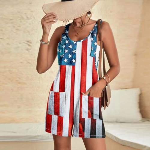 YUTANRAL 4th of July Rompers for Women 2024 Trendy Sleeveless American Flag Overalls Shorts Festival Outfits with Pockets Ag-white AG ‎womens Jumpsuits, Rompers & Overalls