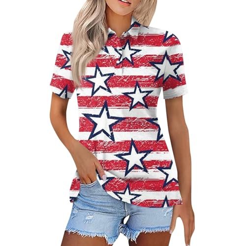 YUTANRAL Polo Shirts for Women 2024 Short Sleeve Summer Tops Button V Neck Business Casual Collared T Shirts Golf Shirts Tees Bi-vermilion ‎womens Tops, Tees & Blouses AG